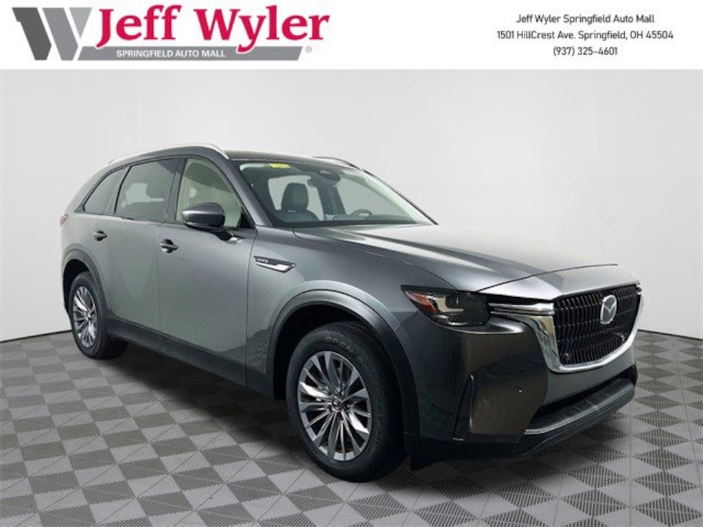 Jeff Wyler Springfield Auto Mall is excited to offer this gorgeous 2025 Mazda CX-90 3.3 Turbo Preferred in Machine Gray Metallic. Well equipped with: 3rd row seats: bench, 4-Wheel Disc Brakes, 8 Speakers, ABS brakes, Air Conditioning, Alloy wheels, AM/FM radio, Auto High-beam Headlights, Automatic temperature control, Brake assist, Bumpers: body-color, Compass, Delay-off headlights, Driver door bin, Driver vanity mirror, Dual front impact airbags, Dual front side impact airbags, E911 Automatic Emergency Notification, Electronic Stability Control, Emergency communication system: MAZDA CONNECT, Exterior Parking Camera Rear, Four wheel independent suspension, Front anti-roll bar, Front Bucket Seats, Front Center Armrest w/Storage, Front dual zone A/C, Front reading lights, Fully automatic headlights, Heated door mirrors, Heated Front Bucket Seats, Heated front seats, Illuminated entry, Infotainment System Voice Command, Knee airbag, Leather Seat Trim, Leather Shift Knob, Leather steering wheel, Low tire pressure warning, Machine Gray Metallic Paint Charge, Mazda Connected Services, Occupant sensing airbag, Outside temperature display, Overhead airbag, Overhead console, Pandora Internet Radio Integration, Panic alarm, Passenger door bin, Passenger vanity mirror, Power door mirrors, Power driver seat, Power Liftgate, Power moonroof, Power passenger seat, Power steering, Power windows, Radio Broadcast Data System Program Information, Radio data system, Radio: AM/FM w/HD/8-Speaker Sound System, Rain sensing wipers, Rear air conditioning, Rear anti-roll bar, Rear reading lights, Rear seat center armrest, Rear window defroster, Rear window wiper, Remote keyless entry, SMS Text Msg Audio Delivery & Reply, Speed control, Speed-sensing steering, Split folding rear seat, Spoiler, Steering wheel mounted audio controls, Tachometer, Telescoping steering wheel, Tilt steering wheel, Traction control, Trip computer, Turn signal indicator mirrors, Variably intermittent wipers, and Wheels: 19" x 8.5J Aluminum Alloy. Ask about available certifications. Used vehicles 10 years of age or newer with less than 100,000 miles are eligible for the Wyler Assurance Program, but eligible vehicles must pass our reconditioning process and multi-point inspection. Provided the vehicle passes inspection, vehicles will be eligible for the 6 month/6,000 mile limited warranty. The 6 month/6,000 mile limited warranty is NOT available on AS-IS vehicles, wholesale vehicles, lease buyback/pass-thru vehicles or un-inspected vehicles. Note that this program can also apply to vehicles where the remaining factory coverage is less than 6 months or 6,000 miles. Please check the Federal Trade Commission (FTC) Buyers guide on the vehicle for full details as to whether or not warranty coverage may apply. Contact Dealer for additional details. The Wyler Assurance 6 month/6,000 Mile limited warranty ends 6 months from the date of the Retail Purchase Agreement (BUYERS ORDER) or when the vehicle's odometer registers 6,000 additional miles to the mileage listed on the BUYERS ORDER, whichever comes first. Your Deductible - The warranty holder on your contract pays the first $100 of each covered repair.