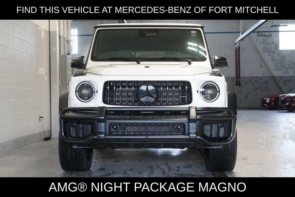 659 MANUFAKTUR Moonlight White Magno 913 MANUFAKTUR black with accent band in platinum white Leather Options DD5 MANUFAKTUR Interior Package Plus JC1 Instrument panel in nappa leather P77 SUPERIOR Line Interior PK2 Active Multicontour Seat Package Plus DF4 AMG Night Package Magno 5U8 Darkened lamp units 7U8 Typography in high-gloss black C44 Front protective bar in night black magno C56 Simulated underguard in night black magno CA0 AMG-specific radiator grille in dark chrome CK9 MANUFAKTUR bumpers and flared wheel arches in night black magno CS1 Mercedes star front and rear in high-gloss black CZ3 Bumper insert in night black magno FS1 Exterior mirror housings in matt black P56 AMG Night Package PAZ AMG Night Package II T81 MANUFAKTUR running boards in black 21U Dashcam 494 USA specification 7U1 AMG emblem in Dark Chrome on bonnet 854 MBUX High-End Rear Seat Entertainment System BS2 AMG front and rear brake callipers painted in red CK0 AMG-specific exhaust system in black E20 MANUFAKTUR logo projector in exterior mirror GK2 MANUFAKTUR Logo Package in black L6H AMG Performance steering wheel in carbon-fiber design /Microfiber PBR ENERGIZING Package Plus RJ8 22â AMG Forged Monoblock Wheels, Matte Black RR3 Spare wheel ring painted in night black magno T91 MANUFAKTUR door handle in black with embossed logo VG0 Rubber mat set X24 Model year 2025 Y72 MANUFAKTUR paint finish, magno ZA2 Full transport packaging ZG6 AMG Carbon Fiber Trim ZT7 Trim element in the grab handle with "MANUFAKTUR" lettering D09 Wheel Locking Bolts D38 AMG Star Set- Plate Frame/Valve Caps/ Keychain D48 AMG Crest Tow Hitch Plug D49 First-Aid Kit