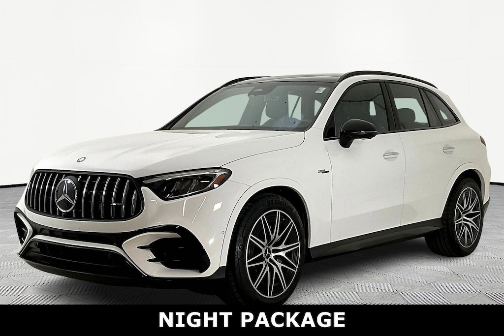 Polar White 2025 Mercedes-Benz GLC 43 AMG® 4MATIC® 9-Speed Automatic I4 AMG® Night Package, Chrome Roof Rails, Exterior Parking Camera Rear, Wheels: 20" AMG® Twin 10-Spoke w/Black Accents.