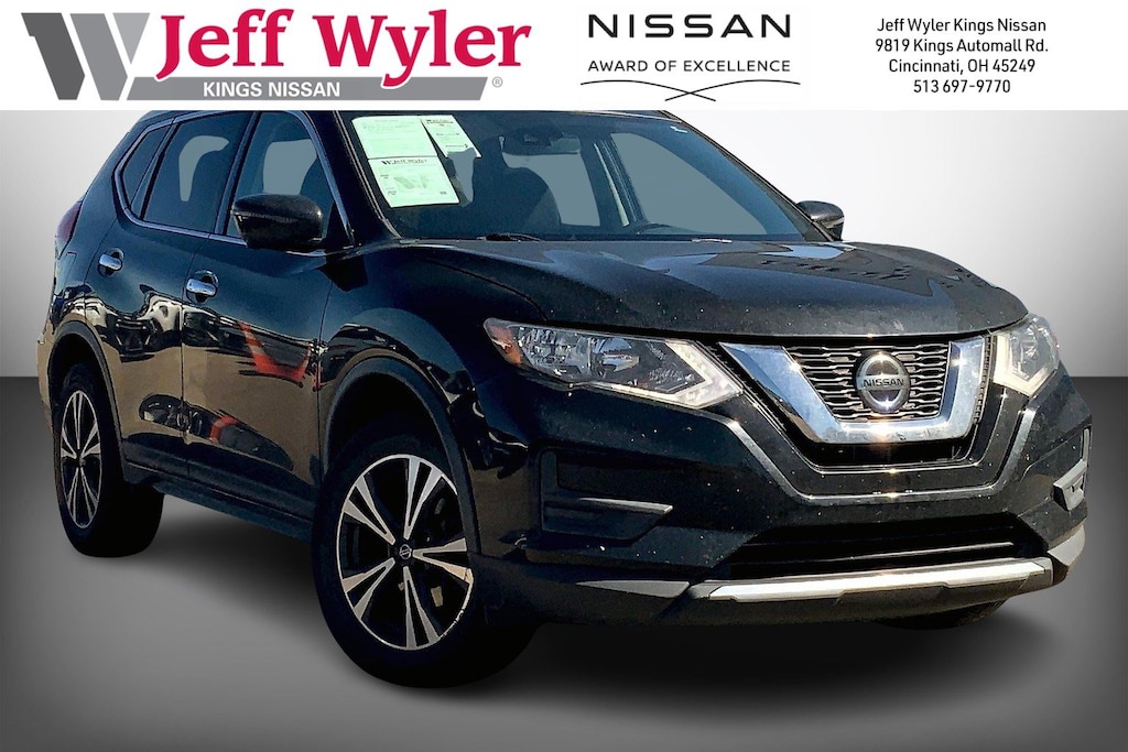 Jeff Wyler Kings Nissan is delighted to offer this good-looking 2019 Nissan Rogue SV in Magnetic Black Pearl. Well equipped with: Sun & Sound Touring Package (18" Aluminum Alloy Wheels, Electronic Parking Brake, Heated Leather-Wrapped Steering Wheel, Intelligent Aroundview Monitor (I-AVM), Intelligent Cruise Control, Memory Driver Seat & Outside Mirrors, Power Panoramic Moonroof, ProPILOT Assist, Radio: AM/FM/CD/AUX NissanConnect w/Navigation, and Steering Assist), AWD, 17" Aluminum Alloy Wheels, 4-Wheel Disc Brakes, 6 Speakers, 6.386 Axle Ratio, ABS brakes, Air Conditioning, Alloy wheels, AM/FM radio: SiriusXM, Anti-whiplash front head restraints, Auto High-beam Headlights, Automatic temperature control, Black Splash Guards (Set of 4), Blind Spot Warning, Brake assist, Bumpers: body-color, CD player, Chrome Rear Bumper Protector, Cloth Seat Trim, Delay-off headlights, Driver door bin, Driver vanity mirror, Dual front impact airbags, Dual front side impact airbags, Electronic Stability Control, First Aid Kit, Floor Mats & 2-PC Cargo Area Protector, Four wheel independent suspension, Front anti-roll bar, Front Bucket Seats, Front Center Armrest w/Storage, Front dual zone A/C, Front reading lights, Fully automatic headlights, Heated door mirrors, Heated Front Bucket Seats, Heated front seats, Illuminated entry, Leather Shift Knob, Low tire pressure warning, NissanConnect featuring Apple CarPlay and Android Auto, Occupant sensing airbag, Outside temperature display, Overhead airbag, Overhead console, Panic alarm, Passenger door bin, Passenger vanity mirror, Power door mirrors, Power driver seat, Power Liftgate, Power steering, Power windows, Radio data system, Radio: AM/FM/CD/AUX, Rear anti-roll bar, Rear Parking Sensors, Rear seat center armrest, Rear window defroster, Rear window wiper, Remote keyless entry, Roof rack: rails only, Security system, Speed control, Speed-sensing steering, Split folding rear seat, Spoiler, Steering wheel mounted audio controls, Tachometer, Telescoping steering wheel, Tilt steering wheel, Traction control, Trip computer, Turn signal indicator mirrors, and Variably intermittent wipers.Ask about available certifications.