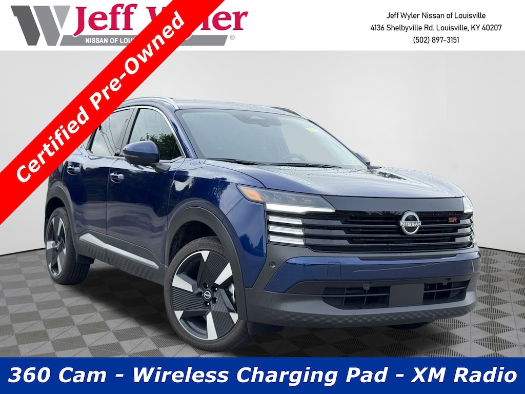 Jeff Wyler Nissan of Louisville is proud to offer this superb-looking 2025 Nissan Kicks SR in Deep Blue Pearl. ** ALL WHEEL DRIVE/AWD **, ** BALANCE OF FACTORY WARRANTY **, ** NISSAN CERTIFIED PRE-OWNED **, ** ONE-OWNER CARFAX **, ** CLEAN CARFAX REPORT **, ** BLUETOOTH **, ** BACKUP CAMERA **, ** HEATED SEATS **, ** PUSH-BUTTON START **, ** SUPER LOW MILES **, ** GREAT FUEL ECONOMY **, ** EXCELLENT SERVICE HISTORY **, ** LOCALLY OWNED **, and ** HOME DELIVERY OPTIONS! ** Nissan Certified Pre-Owned Certified, 19" Alloy Wheels, 17" Alloy Wheels, 4-Wheel Disc Brakes, 6 Speakers, ABS brakes, Air Conditioning, Alloy wheels, AM/FM radio: Sirius, Auto High-beam Headlights, Automatic temperature control, Brake assist, Bumpers: body-color, Carpeted Floor Mats, Cloth/Leatherette Seat Trim, Delay-off headlights, Driver door bin, Driver vanity mirror, Dual front impact airbags, Dual front side impact airbags, Electronic Stability Control, Four wheel independent suspension, Front anti-roll bar, Front Bucket Seats, Front Center Armrest, Front reading lights, Fully automatic headlights, Heated door mirrors, Illuminated entry, Knee airbag, Leather Shift Knob, Leather steering wheel, Low tire pressure warning, Occupant sensing airbag, Outside temperature display, Overhead airbag, Overhead console, Panic alarm, Passenger door bin, Passenger vanity mirror, Power door mirrors, Power steering, Power windows, Radio data system, Radio: AM/FM Audio System, Rear anti-roll bar, Rear reading lights, Rear seat center armrest, Rear side impact airbag, Rear window defroster, Rear window wiper, Remote keyless entry, Security system, Speed control, Speed-sensing steering, Splash Guards, Split folding rear seat, Spoiler, Sport steering wheel, Steering wheel mounted audio controls, Tachometer, Telescoping steering wheel, Tilt steering wheel, Traction control, Trip computer, Turn signal indicator mirrors, Variably intermittent wipers, and Wireless Apple CarPlay/Wireless Android Auto Our PRE-OWNED vehicles are put through a rigorous 167- POINT QUALITY ASSURANCE INSPECTION along with an average amount of over $1,400.00 SPENT to recondition each vehicle so we can be sure to deliver you the highest quality vehicle like you deserve! ***ONLINE PRICE DOES NOT INCLUDE WYLER FAMILY FIRST PACKAGE*** Stop by 4136 Shelbyville Road to see for yourself, or give us a call @ 502-897-3151 to schedule your test drive! ** ALL WHEEL DRIVE/AWD **, ** BALANCE OF FACTORY WARRANTY **, ** NISSAN CERTIFIED PRE-OWNED **, ** ONE-OWNER CARFAX **, ** CLEAN CARFAX REPORT **, ** BLUETOOTH **, ** BACKUP CAMERA **, ** HEATED SEATS **, ** PUSH-BUTTON START **, ** SUPER LOW MILES **, ** GREAT FUEL ECONOMY **, ** EXCELLENT SERVICE HISTORY **, ** LOCALLY OWNED **, 19" Alloy Wheels.