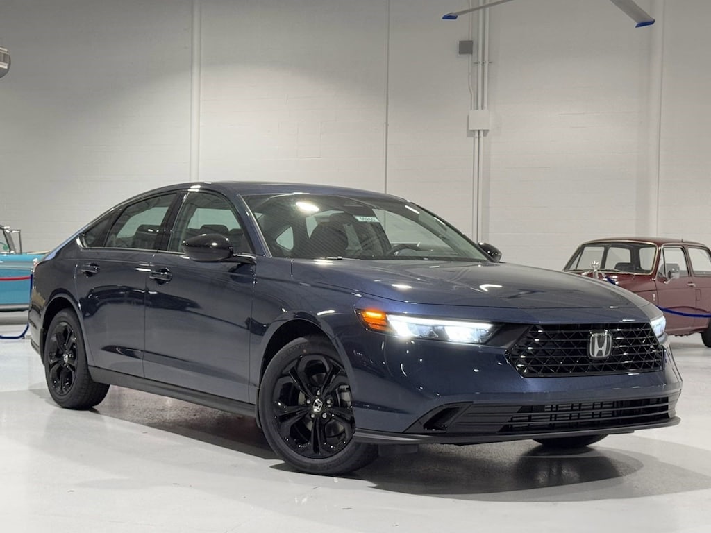 Jeff Wyler Honda Automall is very proud to offer this great 2025 Honda Accord SE in Canyon River Blue Metallic. Well equipped with: B-640m/Black Cloth, 4-Wheel Disc Brakes, 8 Speakers, ABS brakes, Adaptive Cruise Control: Adaptive Cruise Control (ACC) with Low-Speed Follow, Air Conditioning, Alloy wheels, AM/FM radio, Apple CarPlay/Android Auto, Auto High-beam Headlights, Automatic temperature control, Blind Spot Information (BSI) System warning, Brake assist, Bumpers: body-color, Compass, Delay-off headlights, Driver door bin, Driver vanity mirror, Dual front impact airbags, Dual front side impact airbags, Electronic Stability Control, Emergency communication system: HondaLink Assist, Exterior Parking Camera Rear, Fabric Seat Trim, Four wheel independent suspension, Front anti-roll bar, Front Bucket Seats, Front Center Armrest, Front dual zone A/C, Front reading lights, Fully automatic headlights, Heated door mirrors, Heated Front Bucket Seats, Heated front seats, Illuminated entry, Knee airbag, Lane departure: Lane Keeping Assist System (LKAS) active, Low tire pressure warning, Occupant sensing airbag, Outside temperature display, Overhead airbag, Overhead console, Panic alarm, Passenger door bin, Passenger vanity mirror, Power door mirrors, Power driver seat, Power moonroof, Power steering, Power windows, Radio data system, Radio: 180-Watt Audio System, Rear anti-roll bar, Rear reading lights, Rear seat center armrest, Rear side impact airbag, Rear window defroster, Remote keyless entry, Security system, Speed control, Speed-sensing steering, Speed-Sensitive Wipers, Split folding rear seat, Steering wheel mounted audio controls, Tachometer, Telescoping steering wheel, Tilt steering wheel, Traction control, Trip computer, Variably intermittent wipers, and Wheels: 17" x 7.5J Berlina Black. 29/37 City/Highway MPGWyler Family First Package Includes: NanoCure Appearance Protection: Exterior & Interior Chemical Sealant Applied to Protect Against Environmental Hazards (7 Year Warranty Coverage). Pulse- Rear end Collision Avoidance System Theft Deterrent Strategy gives you 5 Years of Coverage against vehicle Theft, Offering up to a $5,000 benefit. Price includes: $500 - Honda Graduate Offer. Exp. 03/31/2026 $500 - Honda Military Appreciation Offer. Exp. 03/31/2026