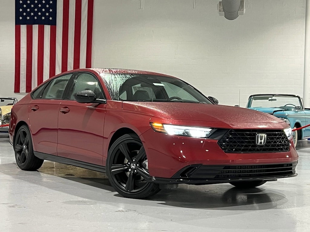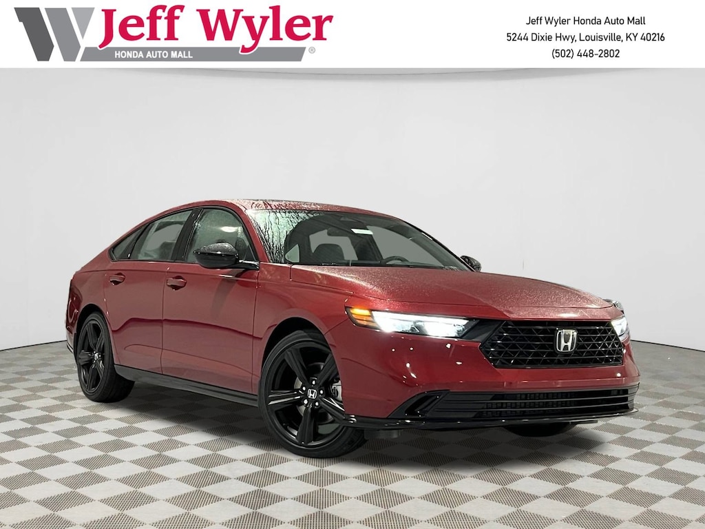 Jeff Wyler Honda Automall is proud to offer this wonderful 2025 Honda Accord Hybrid Sport-L in Radiant Red Metallic. Well equipped with: 2.0L I4 DOHC 16V, 4-Wheel Disc Brakes, 8 Speakers, ABS brakes, Adaptive Cruise Control: Adaptive Cruise Control (ACC) with Low-Speed Follow, Air Conditioning, Alloy wheels, AM/FM radio, Apple CarPlay/Android Auto, Auto High-beam Headlights, Automatic temperature control, Blind Spot Information (BSI) System warning, Brake assist, Bumpers: body-color, Compass, Delay-off headlights, Driver door bin, Driver vanity mirror, Dual front impact airbags, Dual front side impact airbags, Electronic Stability Control, Emergency communication system: HondaLink, Exterior Parking Camera Rear, Four wheel independent suspension, Front anti-roll bar, Front Bucket Seats, Front Center Armrest, Front dual zone A/C, Front reading lights, Fully automatic headlights, Heated Front Bucket Seats, Heated front seats, Illuminated entry, Knee airbag, Lane departure: Lane Keeping Assist System (LKAS) active, Leather Shift Knob, Leather steering wheel, Leather-Trimmed Seat Trim, Low tire pressure warning, Memory seat, Occupant sensing airbag, Outside temperature display, Overhead airbag, Overhead console, Panic alarm, Passenger door bin, Passenger vanity mirror, Power door mirrors, Power driver seat, Power moonroof, Power passenger seat, Power steering, Power windows, Radio data system, Radio: 180-Watt Audio System, Rear anti-roll bar, Rear reading lights, Rear seat center armrest, Rear side impact airbag, Rear window defroster, Remote keyless entry, Security system, Speed control, Speed-sensing steering, Speed-Sensitive Wipers, Split folding rear seat, Spoiler, Steering wheel mounted audio controls, Telescoping steering wheel, Tilt steering wheel, Traction control, Trip computer, Variably intermittent wipers, and Wheels: 19" x 8.5J Matte Berlina Black. 46/41 City/Highway MPGWyler Family First Package Includes: NanoCure Appearance Protection: Exterior & Interior Chemical Sealant Applied to Protect Against Environmental Hazards (7 Year Warranty Coverage). Pulse- Rear end Collision Avoidance System Theft Deterrent Strategy gives you 5 Years of Coverage against vehicle Theft, Offering up to a $5,000 benefit. Price includes: $500 - Honda Graduate Offer. Exp. 03/31/2026 $500 - Honda Military Appreciation Offer. Exp. 03/31/2026