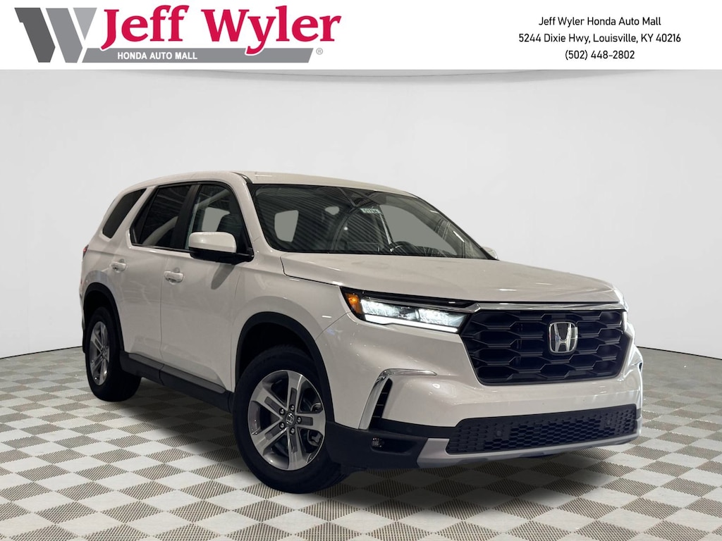 Jeff Wyler Honda Automall is excited to offer this fantastic 2025 Honda Pilot EX-L in Wy. Well equipped with: AWD, 3rd row seats: split-bench, 4-Wheel Disc Brakes, 4.167 Axle Ratio, 9 Speakers, ABS brakes, Adaptive Cruise Control: Adaptive Cruise Control (ACC) with Low-Speed Follow, Air Conditioning, Alloy wheels, AM/FM radio: SiriusXM, Apple CarPlay/Android Auto, Auto High-beam Headlights, Auto-dimming Rear-View mirror, Automatic temperature control, Blind Spot Information (BSI) System warning, Brake assist, Bumpers: body-color, Delay-off headlights, Driver door bin, Driver vanity mirror, Dual front impact airbags, Dual front side impact airbags, Electronic Stability Control, Emergency communication system: HondaLink Assist, Exterior Parking Camera Rear, Four wheel independent suspension, Front anti-roll bar, Front Bucket Seats, Front Center Armrest, Front dual zone A/C, Front fog lights, Front reading lights, Fully automatic headlights, Garage door transmitter: HomeLink, Heated door mirrors, Heated Front Bucket Seats, Heated front seats, Illuminated entry, Knee airbag, Lane departure: Lane Keeping Assist System (LKAS) active, Leather Seat Trim, Low tire pressure warning, Memory seat, Occupant sensing airbag, Outside temperature display, Overhead airbag, Overhead console, Panic alarm, Passenger door bin, Passenger vanity mirror, Power door mirrors, Power driver seat, Power Liftgate, Power passenger seat, Power steering, Power windows, Radio data system, Radio: 245-Watt Audio System, Rear air conditioning, Rear anti-roll bar, Rear reading lights, Rear seat center armrest, Rear window defroster, Rear window wiper, Reclining 3rd row seat, Remote keyless entry, Security system, SiriusXM, Speed control, Speed-sensing steering, Speed-Sensitive Wipers, Split folding rear seat, Spoiler, Steering wheel mounted audio controls, Tachometer, Telescoping steering wheel, Tilt steering wheel, Traction control, Trip computer, Turn signal indicator mirrors, Variably intermittent wipers, and Wheels: 18" Pewter Gray Machined Face.Wyler Family First Package Includes: NanoCure Appearance Protection: Exterior & Interior Chemical Sealant Applied to Protect Against Environmental Hazards (7 Year Warranty Coverage). Pulse- Rear end Collision Avoidance System Theft Deterrent Strategy gives you 5 Years of Coverage against vehicle Theft, Offering up to a $5,000 benefit. Price includes: $500 - Honda Graduate Offer. Exp. 03/31/2026 $500 - Honda Military Appreciation Offer. Exp. 03/31/2026