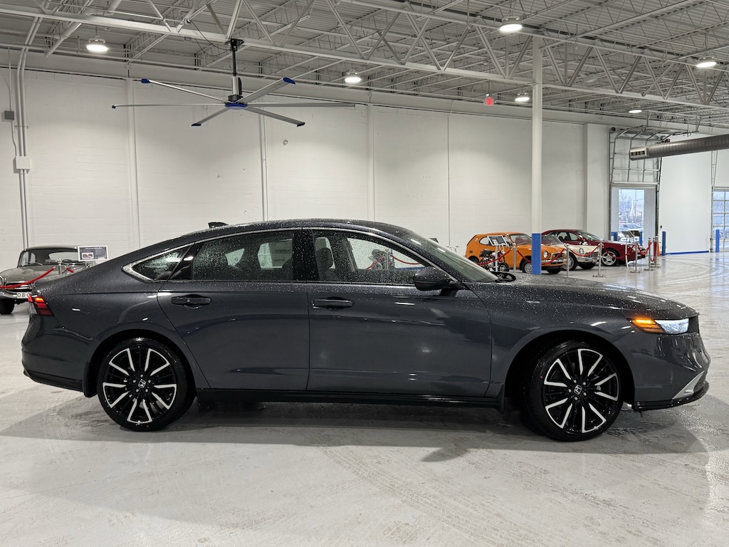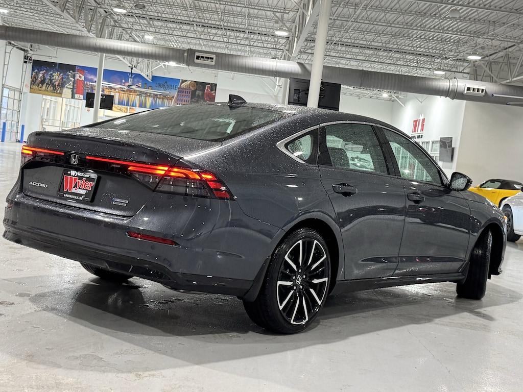 Jeff Wyler Honda Automall is pumped up to offer this good-looking 2026 Honda Accord Hybrid Touring in Meteorite Gray Metallic. Well equipped with: 2.0L I4 DOHC 16V, 12 Speakers, 4-Wheel Disc Brakes, ABS brakes, Adaptive Cruise Control: Adaptive Cruise Control (ACC) with Low-Speed Follow, Air Conditioning, Alloy wheels, AM/FM radio, Apple CarPlay/Android Auto, Auto High-beam Headlights, Auto-dimming Rear-View mirror, Automatic temperature control, Blind Spot Information (BSI) System warning, Bose Premium Sound System, Brake assist, Bumpers: body-color, Compass, Delay-off headlights, Driver door bin, Driver vanity mirror, Dual front impact airbags, Dual front side impact airbags, Electronic Stability Control, Emergency communication system: HondaLink, Exterior Parking Camera Rear, Four wheel independent suspension, Front anti-roll bar, Front Bucket Seats, Front Center Armrest, Front dual zone A/C, Front reading lights, Fully automatic headlights, Heads-Up Display, Heated and Ventilated Front Bucket Seats, Heated door mirrors, Heated front seats, Heated rear seats, Heated steering wheel, Illuminated entry, Knee airbag, Lane departure: Lane Keeping Assist System (LKAS) active, Leather Shift Knob, Leather steering wheel, Leather-Trimmed Seat Trim, Low tire pressure warning, Memory seat, Navigation System, Occupant sensing airbag, Outside temperature display, Overhead airbag, Overhead console, Panic alarm, Passenger door bin, Passenger vanity mirror, Power door mirrors, Power driver seat, Power moonroof, Power passenger seat, Power steering, Power windows, Radio data system, Rain sensing wipers, Rear anti-roll bar, Rear reading lights, Rear seat center armrest, Rear side impact airbag, Rear window defroster, Remote keyless entry, Security system, Speed control, Speed-sensing steering, Speed-Sensitive Wipers, Split folding rear seat, Steering wheel mounted audio controls, Telescoping steering wheel, Tilt steering wheel, Traction control, Trip computer, Turn signal indicator mirrors, Variably intermittent wipers, Ventilated front seats, and Wheels: 19" x 8.5J Berlina Black. 46/41 City/Highway MPGWyler Family First Package Includes: NanoCure Appearance Protection: Exterior & Interior Chemical Sealant Applied to Protect Against Environmental Hazards (7 Year Warranty Coverage). Pulse- Rear end Collision Avoidance System Theft Deterrent Strategy gives you 5 Years of Coverage against vehicle Theft, Offering up to a $5,000 benefit.