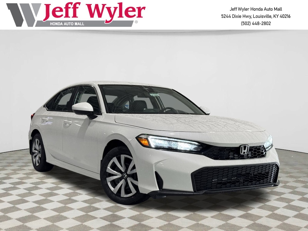 Jeff Wyler Honda Automall is proud to offer this wonderful 2026 Honda Civic LX in Platinum White Pearl. Well equipped with: Nh-883p/Black Cloth, 16" Wheels w/Full Covers, 4 Speakers, 4-Wheel Disc Brakes, ABS brakes, Adaptive Cruise Control: Adaptive Cruise Control (ACC) with Low-Speed Follow, Air Conditioning, AM/FM radio, Apple CarPlay/Android Auto, Auto High-beam Headlights, Automatic temperature control, Brake assist, Bumpers: body-color, Cloth Seating Surfaces, Delay-off headlights, Driver door bin, Driver vanity mirror, Dual front impact airbags, Dual front side impact airbags, Electronic Stability Control, Emergency communication system: HondaLink, Exterior Parking Camera Rear, Four wheel independent suspension, Front anti-roll bar, Front Bucket Seats, Front Center Armrest, Front reading lights, Fully automatic headlights, Illuminated entry, Knee airbag, Low tire pressure warning, Occupant sensing airbag, Outside temperature display, Overhead airbag, Panic alarm, Passenger door bin, Passenger vanity mirror, Power door mirrors, Power steering, Power windows, Radio data system, Radio: 160-Watt Audio System, Rear anti-roll bar, Rear side impact airbag, Rear window defroster, Remote keyless entry, Security system, Speed control, Speed-sensing steering, Steering wheel mounted audio controls, Tachometer, Telescoping steering wheel, Tilt steering wheel, Traction control, and Trip computer. 32/41 City/Highway MPGWyler Family First Package Includes: NanoCure Appearance Protection: Exterior & Interior Chemical Sealant Applied to Protect Against Environmental Hazards (7 Year Warranty Coverage). Pulse- Rear end Collision Avoidance System Theft Deterrent Strategy gives you 5 Years of Coverage against vehicle Theft, Offering up to a $5,000 benefit.