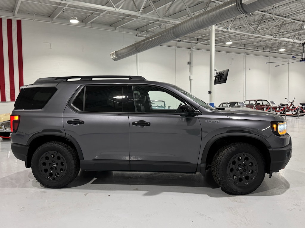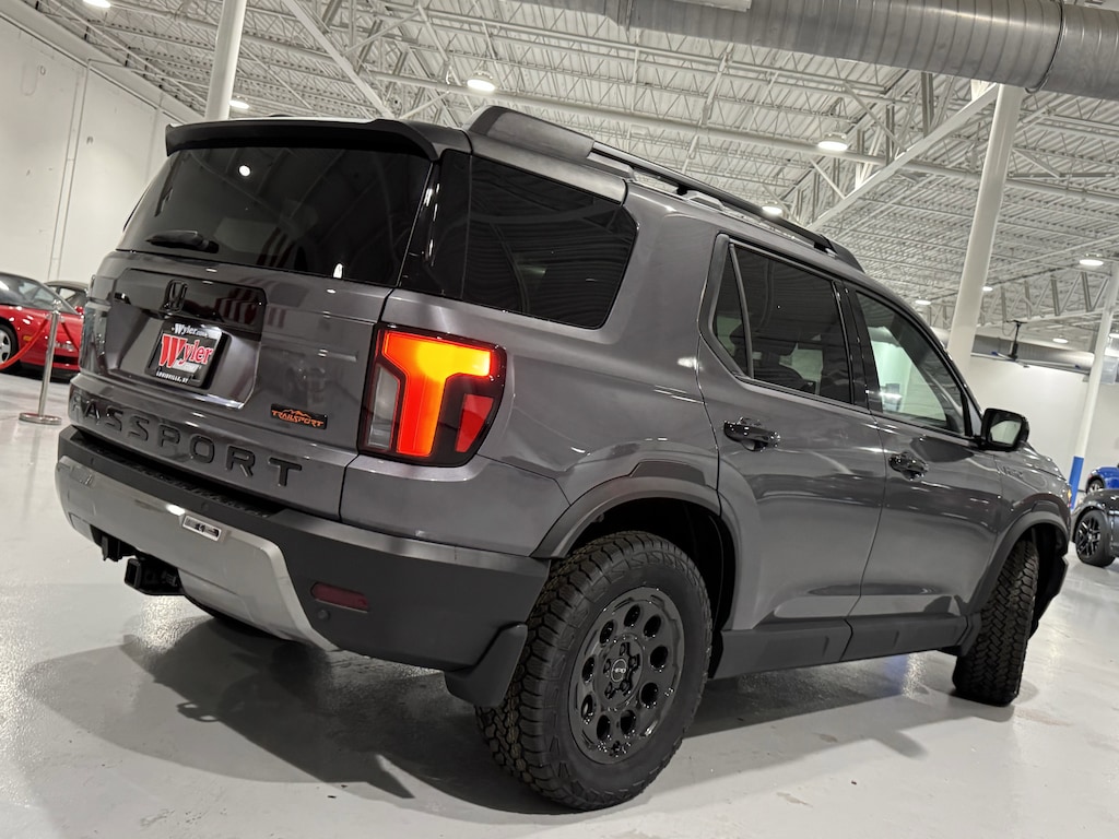 Jeff Wyler Honda Automall is very proud to offer this outstanding 2026 Honda Passport TrailSport Elite Blackout in Modern Steel Metallic. Well equipped with: 12 Speakers, 4-Wheel Disc Brakes, ABS brakes, Adaptive Cruise Control: Adaptive Cruise Control (ACC) with Low-Speed Follow, Air Conditioning, Alloy wheels, Apple CarPlay/Android Auto, Auto High-beam Headlights, Auto-dimming door mirrors, Auto-dimming Rear-View mirror, Automatic temperature control, Blind Spot Information (BSI) System warning, Brake assist, Compass, Delay-off headlights, Driver door bin, Driver vanity mirror, Driver's Seat Mounted Armrest, Dual front impact airbags, Dual front side impact airbags, Electronic Stability Control, Emergency communication system: HondaLink, Exterior Parking Camera Rear, Four wheel independent suspension, Front anti-roll bar, Front Bucket Seats, Front Center Armrest, Front dual zone A/C, Front fog lights, Front reading lights, Fully automatic headlights, Heated & Ventilated Front Bucket Seats, Heated door mirrors, Heated front seats, Heated rear seats, Heated steering wheel, HVAC memory, Illuminated entry, Knee airbag, Lane departure: Lane Keeping Assist System (LKAS) active, Leather steering wheel, Low tire pressure warning, Memory seat, Navigation system: Google Maps, Occupant sensing airbag, Outside temperature display, Overhead airbag, Overhead console, Panic alarm, Passenger door bin, Passenger seat mounted armrest, Passenger vanity mirror, Perforated Leather Seat Trim, Power door mirrors, Power driver seat, Power Liftgate, Power moonroof, Power passenger seat, Power steering, Power windows, Radio data system, Radio: Bose Premium Sound System w/12 Speakers, Rain sensing wipers, Rear air conditioning, Rear anti-roll bar, Rear reading lights, Rear seat center armrest, Rear window defroster, Rear window wiper, Remote keyless entry, Security system, Speed control, Speed-sensing steering, Split folding rear seat, Spoiler, Steering wheel mounted audio controls, Tachometer, Telescoping steering wheel, Tilt steering wheel, Traction control, Trip computer, Turn signal indicator mirrors, Variably intermittent wipers, Ventilated front seats, and Wheels: 18" HPD Black Alloy.Wyler Family First Package Includes: NanoCure Appearance Protection: Exterior & Interior Chemical Sealant Applied to Protect Against Environmental Hazards (7 Year Warranty Coverage). Pulse- Rear end Collision Avoidance System Theft Deterrent Strategy gives you 5 Years of Coverage against vehicle Theft, Offering up to a $5,000 benefit. Price includes: $500 - Honda Graduate Offer. Exp. 03/31/2026 $500 - Honda Military Appreciation Offer. Exp. 03/31/2026