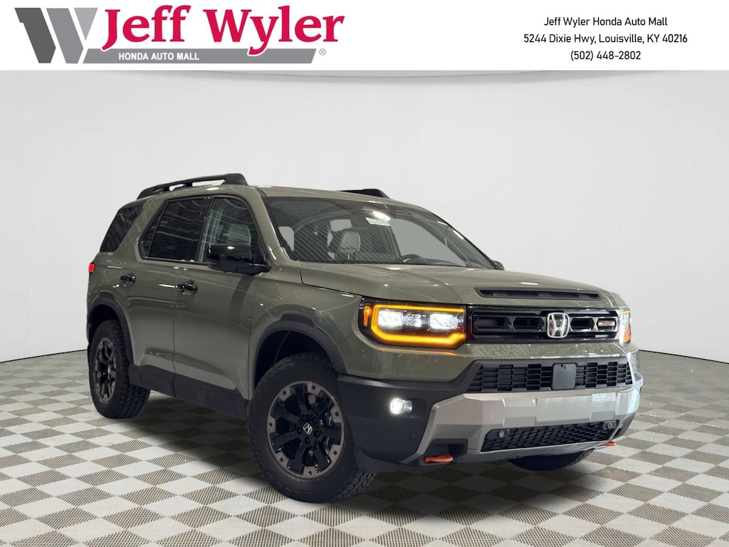 Jeff Wyler Honda Automall is delighted to offer this fantastic 2026 Honda Passport TrailSport Elite in Gp. Well equipped with: 12 Speakers, 4-Wheel Disc Brakes, ABS brakes, Adaptive Cruise Control: Adaptive Cruise Control (ACC) with Low-Speed Follow, Air Conditioning, Alloy wheels, Apple CarPlay/Android Auto, Auto High-beam Headlights, Auto-dimming door mirrors, Auto-dimming Rear-View mirror, Automatic temperature control, Blind Spot Information (BSI) System warning, Brake assist, Compass, Delay-off headlights, Driver door bin, Driver vanity mirror, Driver's Seat Mounted Armrest, Dual front impact airbags, Dual front side impact airbags, Electronic Stability Control, Emergency communication system: HondaLink, Exterior Parking Camera Rear, Four wheel independent suspension, Front anti-roll bar, Front Bucket Seats, Front Center Armrest, Front dual zone A/C, Front fog lights, Front reading lights, Fully automatic headlights, Heated & Ventilated Front Bucket Seats, Heated door mirrors, Heated front seats, Heated rear seats, Heated steering wheel, HVAC memory, Illuminated entry, Knee airbag, Lane departure: Lane Keeping Assist System (LKAS) active, Leather steering wheel, Low tire pressure warning, Memory seat, Navigation system: Google Maps, Occupant sensing airbag, Outside temperature display, Overhead airbag, Overhead console, Panic alarm, Passenger door bin, Passenger seat mounted armrest, Passenger vanity mirror, Perforated Leather Seat Trim, Power door mirrors, Power driver seat, Power Liftgate, Power moonroof, Power passenger seat, Power steering, Power windows, Radio data system, Radio: Bose Premium Sound System w/12 Speakers, Rain sensing wipers, Rear air conditioning, Rear anti-roll bar, Rear reading lights, Rear seat center armrest, Rear window defroster, Rear window wiper, Remote keyless entry, Security system, Speed control, Speed-sensing steering, Split folding rear seat, Spoiler, Steering wheel mounted audio controls, Tachometer, Telescoping steering wheel, Tilt steering wheel, Traction control, Trip computer, Turn signal indicator mirrors, Variably intermittent wipers, Ventilated front seats, and Wheels: 18" Berlina Black Machine Face Alloy.Wyler Family First Package Includes: NanoCure Appearance Protection: Exterior & Interior Chemical Sealant Applied to Protect Against Environmental Hazards (7 Year Warranty Coverage). Pulse- Rear end Collision Avoidance System Theft Deterrent Strategy gives you 5 Years of Coverage against vehicle Theft, Offering up to a $5,000 benefit. Price includes: $500 - Honda Graduate Offer. Exp. 03/31/2026 $500 - Honda Military Appreciation Offer. Exp. 03/31/2026
