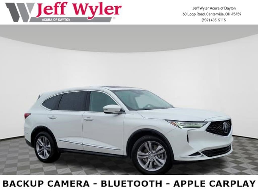 Jeff Wyler Acura of Dayton is delighted to offer this terrific 2023 Acura MDX 3.5L in Lunar Silver Metallic. MDX 3.5L SH-AWD, 4D Sport Utility, V6, 10-Speed Automatic, AWD, Lunar Silver Metallic, Graystone w/Perforated Premium Milano Leather Trimmed Seats, 19" x 8.5" Aluminum Alloy Wheels, 3rd row seats: split-bench, 9 Speakers, A/V remote: CabinControl, AM/FM radio: SiriusXM, Apple CarPlay/Android Auto, Audio memory, Auto High-beam Headlights, Auto tilt-away steering wheel, Automatic temperature control, Brake assist, Delay-off headlights, Electronic Stability Control, Exterior Parking Camera Rear, Four wheel independent suspension, Front dual zone A/C, Fully automatic headlights, Garage door transmitter: HomeLink, Heated door mirrors, Heated front seats, Heated Front Sport Seats, HVAC memory, Lane departure: Lane Keeping Assist System (LKAS) active, Memory seat, Power driver seat, Power Liftgate, Power moonroof, Power steering, Power windows, Radio data system, Radio: AM/FM Acura Premium Audio System, Rear air conditioning, Rear window defroster, Remote keyless entry, Speed control, Speed-sensing steering, Split folding rear seat, Steering wheel memory, Steering wheel mounted audio controls, Traction control, Turn signal indicator mirrors, Variably intermittent wipers, 4-Wheel Disc Brakes, 4.17 Axle Ratio, ABS brakes, Air Conditioning, Alloy wheels, Anti-whiplash front head restraints, Auto-dimming Rear-View mirror, Bumpers: body-color, Compass, Driver door bin, Driver vanity mirror, Dual front impact airbags, Dual front side impact airbags, Emergency communication system: AcuraLink, Front anti-roll bar, Front Bucket Seats, Front Center Armrest, Front reading lights, Illuminated entry, Knee airbag, Leather steering wheel, Leatherette Trimmed Seats, Low tire pressure warning, Occupant sensing airbag, Outside temperature display, Overhead airbag, Overhead console, Panic alarm, Passenger door bin, Passenger vanity mirror, Power door mirrors, Power passenger seat, Rear anti-roll bar, Rear reading lights, Rear seat center armrest, Rear window wiper, Security system, Speed-Sensitive Wipers, Spoiler, Tachometer, Telescoping steering wheel, Tilt steering wheel, and Trip computer Our PRE-OWNED vehicles are put through a rigorous 167- POINT QUALITY ASSURANCE INSPECTION along with an average amount of over $1,400.00 SPENT to recondition each vehicle so we can be sure to deliver you the highest quality vehicle like you deserve! ***ONLINE PRICE DOES NOT INCLUDE WYLER FAMILY FIRST PACKAGE*** CARFAX One-Owner. Clean CARFAX.