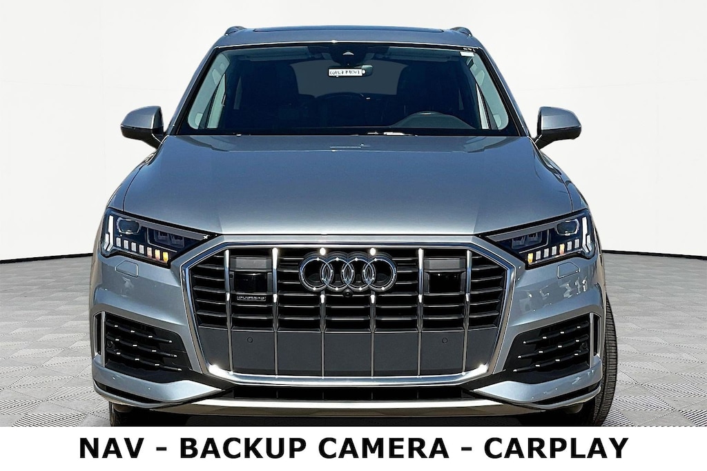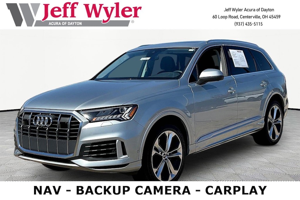 Jeff Wyler Acura of Dayton is pleased to offer this outstanding 2023 Audi Q7 55 Premium Plus in Satellite Silver Metallic. 10 Speakers, 3.204 Axle Ratio, 3rd row seats: bench, 4-Wheel Disc Brakes, ABS brakes, Air Conditioning, Alloy wheels, AM/FM radio: SiriusXM w/ 360L, Auto High-beam Headlights, Auto-dimming door mirrors, Auto-dimming Rear-View mirror, Automatic temperature control, Brake assist, Bumpers: body-color, Compass, Delay-off headlights, Driver door bin, Driver vanity mirror, Dual front impact airbags, Dual front side impact airbags, Electronic Stability Control, Emergency communication system: Audi connect CARE, Exterior Parking Camera Rear, Four wheel independent suspension, Front anti-roll bar, Front Bucket Seats, Front Center Armrest, Front dual zone A/C, Front fog lights, Front reading lights, Fully automatic headlights, Garage door transmitter: HomeLink, Genuine wood door panel insert, Heated door mirrors, Heated Front Bucket Seats, Heated front seats, Illuminated entry, Leather Seating Surfaces, Leather Shift Knob, Leather steering wheel, Low tire pressure warning, Memory seat, Navigation system: Audi MMI Navigation plus with Touch Response, Occupant sensing airbag, Outside temperature display, Overhead airbag, Overhead console, Panic alarm, Passenger door bin, Passenger vanity mirror, Power door mirrors, Power driver seat, Power Liftgate, Power moonroof: Panoramic, Power passenger seat, Power steering, Power windows, Radio data system, Radio: Audi Sound System, Rain sensing wipers, Rear air conditioning, Rear anti-roll bar, Rear fog lights, Rear reading lights, Rear seat center armrest, Rear side impact airbag, Rear window defroster, Rear window wiper, Reclining 3rd row seat, Remote keyless entry, Roof rack: rails only, Security system, Speed control, Speed-sensing steering, Split folding rear seat, Spoiler, Steering wheel memory, Steering wheel mounted audio controls, Tachometer, Telescoping steering wheel, Tilt steering wheel, Traction control, Trip computer, Turn signal indicator mirrors, Variably intermittent wipers, and Wheels: 19" 5-Arm-Star Design Our PRE-OWNED vehicles are put through a rigorous 167- POINT QUALITY ASSURANCE INSPECTION along with an average amount of over $1,400.00 SPENT to recondition each vehicle so we can be sure to deliver you the highest quality vehicle like you deserve! ***ONLINE PRICE DOES NOT INCLUDE WYLER FAMILY FIRST PACKAGE*** CARFAX One-Owner.