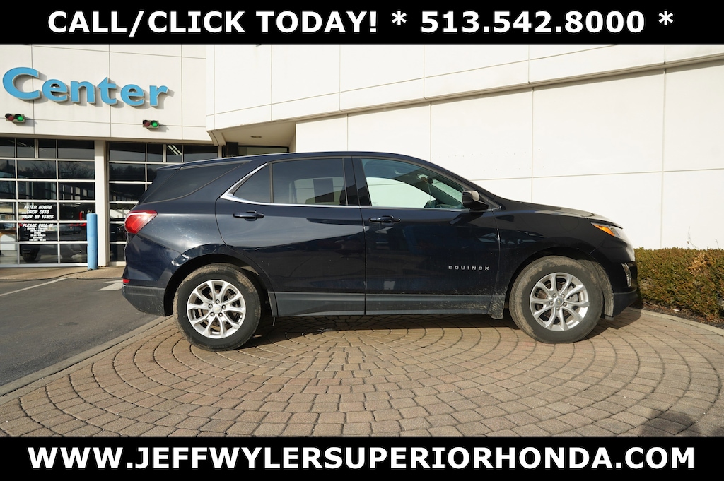 Jeff Wyler Superior Honda is delighted to offer this terrific 2020 Chevrolet Equinox LT in Midnight Blue Metallic. BLUETOOTH Driver Convenience Package (3-Spoke Leather-Wrapped Steering Wheel, Dual Zone Automatic Climate Control, Front Fog Lamps, Heated Driver & Front Passenger Seats, Rear Power Liftgate, Remote Start, and Universal Home Remote), Interior Protection Package (LPO) (All-Weather Floor Mats and Cargo Mat), Preferred Equipment Group 2FL, Equinox LT, 4D Sport Utility, 1.5L DOHC, 6-Speed Automatic Electronic with Overdrive, FWD, Midnight Blue Metallic, Jet Black Cloth, 17" Aluminum Wheels, 2 Rear USB Charging-Only Ports, 2 USB Ports & Auxiliary Input Jack, 2-Way Power Driver Lumbar Control Seat Adjuster, 3.50 Final Drive Axle Ratio, 4-Wheel Disc Brakes, 6 Speaker Audio System Feature, 6 Speakers, 8-Way Power Driver Seat Adjuster, ABS brakes, Air Conditioning, Alloy wheels, AM/FM radio: SiriusXM, Apple CarPlay/Android Auto, Auto High-beam Headlights, Bluetooth® For Phone, Brake assist, Bumpers: body-color, Compass, Delay-off headlights, Driver door bin, Driver vanity mirror, Dual front impact airbags, Dual front side impact airbags, Electronic Stability Control, Emergency communication system: OnStar and Chevrolet connected services capable, Four wheel independent suspension, Front anti-roll bar, Front Bucket Seats, Front Center Armrest, Front Passenger 4-Way Manual Seat Adjuster, Front reading lights, Fully automatic headlights, Heated door mirrors, High-Intensity Discharge Headlights, Illuminated entry, Low tire pressure warning, Occupant sensing airbag, Outside temperature display, Overhead airbag, Overhead console, Panic alarm, Passenger door bin, Passenger vanity mirror, Power door mirrors, Power driver seat, Power steering, Power windows, Premium audio system: Chevrolet Infotainment 3, Premium Cloth Seat Trim, Radio data system, Radio: Chevrolet Infotainment 3 System w/AM/FM, Rear anti-roll bar, Rear reading lights, Rear seat center armrest, Rear window defroster, Rear window wiper, Remote keyless entry, Security system, SiriusXM Radio, Speed control, Speed-sensing steering, Split folding rear seat, Spoiler, Steering wheel mounted audio controls, Tachometer, Telescoping steering wheel, Tilt steering wheel, Traction control, Trip computer, and Variably intermittent wipers Our PRE-OWNED vehicles are put through a rigorous 167- POINT QUALITY ASSURANCE INSPECTION along with an average amount of over $1,400.00 SPENT to recondition each vehicle so we can be sure to deliver you the highest quality vehicle like you deserve! ***ONLINE PRICE DOES NOT INCLUDE WYLER FAMILY FIRST PACKAGE*** Stop by 4777 Spring Grove Ave. Road to see for yourself, or give us a call @ 283-209-1858 to schedule your test drive!