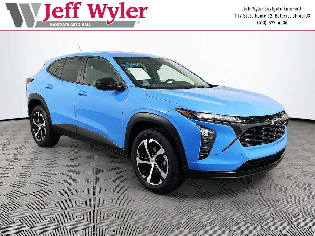 Jeff Wyler Eastgate Auto Mall is honored to offer this great-looking 2024 Chevrolet Trax 1RS in Fountain Blue. Well equipped with: Preferred Equipment Group 1RS, 2-Way Adjustable Front Head Restraints, 3.50 Final Drive Axle Ratio, 4 Speakers, 4-Speaker Audio System Feature, 4-Way Manual Front Passenger Seat Adjuster, 4-Wheel Disc Brakes, 6-Way Manual Driver Seat Adjuster, ABS brakes, Air Conditioning, Alloy wheels, AM/FM radio: SiriusXM, Auto High-beam Headlights, Brake assist, Bumpers: body-color, Cloth Seat Trim, Compass, Delay-off headlights, Driver door bin, Driver vanity mirror, Dual front impact airbags, Dual front side impact airbags, Electronic Stability Control, Emergency communication system: OnStar and Chevrolet connected services capable, Exterior Parking Camera Rear, Front anti-roll bar, Front Bucket Seats, Front Center Armrest, Front reading lights, Front wheel independent suspension, Fully automatic headlights, Heated door mirrors, Heated Driver & Front Passenger Seats, Heated front seats, Heated steering wheel, Illuminated entry, Low tire pressure warning, Occupant sensing airbag, Outside temperature display, Overhead airbag, Overhead console, Panic alarm, Passenger door bin, Passenger vanity mirror, Power door mirrors, Power steering, Power windows, Premium audio system: Chevrolet Infotainment 3, Radio data system, Radio: Chevrolet Infotainment 3 System w/AM/FM, Rear window defroster, Rear window wiper, Remote keyless entry, Security system, SiriusXM, Speed control, Split folding rear seat, Spoiler, Sport steering wheel, Steering wheel mounted audio controls, Tachometer, Telescoping steering wheel, Tilt steering wheel, Traction control, Trip computer, Variably intermittent wipers, and Wheels: 18" Black-Painted Machined Aluminum. CARFAX One-Owner. Clean CARFAX. Awards: * Car and Driver 10 BestCar and Driver, January 2017. Ask about available certifications. Used vehicles 10 years of age or newer with less than 100,000 miles are eligible for the Wyler Assurance Program, but eligible vehicles must pass our reconditioning process and multi-point inspection. Provided the vehicle passes inspection, vehicles will be eligible for the 6 month/6,000 mile limited warranty. The 6 month/6,000 mile limited warranty is NOT available on AS-IS vehicles, wholesale vehicles, lease buyback/pass-thru vehicles or un-inspected vehicles. Note that this program can also apply to vehicles where the remaining factory coverage is less than 6 months or 6,000 miles. Please check the Federal Trade Commission (FTC) Buyers guide on the vehicle for full details as to whether or not warranty coverage may apply. Contact Dealer for additional details. The Wyler Assurance 6 month/6,000 Mile limited warranty ends 6 months from the date of the Retail Purchase Agreement (BUYERS ORDER) or when the vehicle's odometer registers 6,000 additional miles to the mileage listed on the BUYERS ORDER, whichever comes first. Your Deductible - The warranty holder on your contract pays the first $100 of each covered repair.