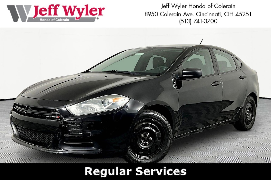 Jeff Wyler Honda of Colerain is very proud to offer this fantastic 2015 Dodge Dart SE in Pitch Black Clearcoat. Well equipped with: Quick Order Package 24A, 16 x 7.0 Steel Wheels, 16" Silver Wheel Covers, 4 Speakers, 4-Wheel Disc Brakes, ABS brakes, AM/FM radio, Anti-whiplash front head restraints, Brake assist, Bumpers: body-color, CD player, Delay-off headlights, Driver door bin, Driver vanity mirror, Dual front impact airbags, Dual front side impact airbags, Electronic Stability Control, Four wheel independent suspension, Front anti-roll bar, Front Bucket Seats, Front Center Armrest, Front reading lights, Knee airbag, Low tire pressure warning, Occupant sensing airbag, Outside temperature display, Overhead airbag, Passenger door bin, Passenger vanity mirror, Power steering, Power windows, Radio data system, Radio: Uconnect 200 AM/FM/CD/MP3, Rear reading lights, Rear side impact airbag, Rear window defroster, Speed-sensing steering, Speed-Sensitive Wipers, Sport Cloth Seats, Tachometer, Telescoping steering wheel, Tilt steering wheel, Traction control, and Variably intermittent wipers.