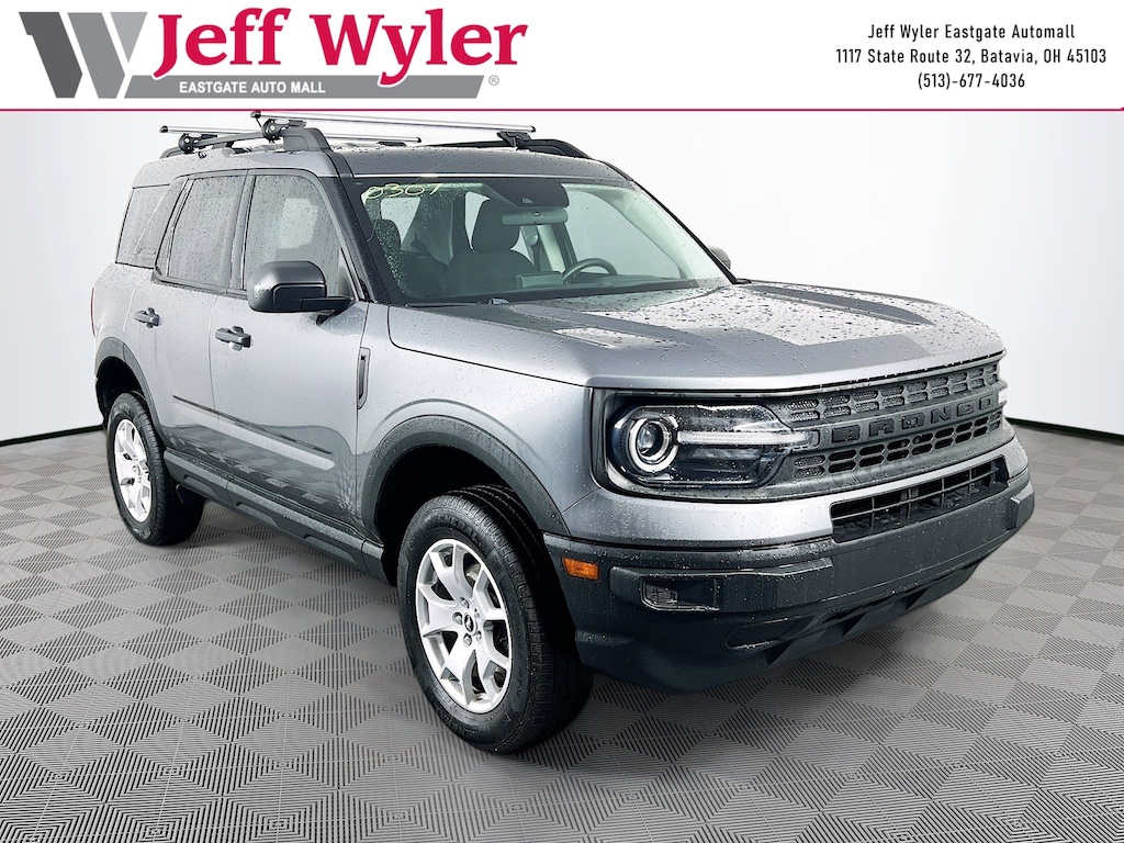 Jeff Wyler Eastgate Auto Mall is delighted to offer this good-looking 2021 Ford Bronco Sport in Gray. Well equipped with: Equipment Group 100A, 3.80 Axle Ratio, 4-Wheel Disc Brakes, 6 Speakers, ABS brakes, Air Conditioning, Alloy wheels, AM/FM radio, AM/FM Stereo, Auto High-beam Headlights, Brake assist, Cloth Front Bucket Seats, Compass, Delay-off headlights, Driver door bin, Driver vanity mirror, Dual front impact airbags, Dual front side impact airbags, Electronic Stability Control, Emergency communication system: SYNC 3 911 Assist, Exterior Parking Camera Rear, Four wheel independent suspension, Front anti-roll bar, Front Bucket Seats, Front Center Armrest, Front reading lights, Fully automatic headlights, Illuminated entry, Knee airbag, Low tire pressure warning, Occupant sensing airbag, Outside temperature display, Overhead airbag, Overhead console, Panic alarm, Passenger door bin, Passenger vanity mirror, Power door mirrors, Power steering, Power windows, Radio data system, Rear anti-roll bar, Rear reading lights, Rear window defroster, Rear window wiper, Remote keyless entry, Roof rack: rails only, Security system, Speed control, Speed-sensing steering, Speed-Sensitive Wipers, Split folding rear seat, Steering wheel mounted audio controls, SYNC 3 Communications & Entertainment System, SYNC 3/Apple CarPlay/Android Auto, Tachometer, Telescoping steering wheel, Tilt steering wheel, Traction control, Trip computer, Variably intermittent wipers, and Wheels: 17" Sparkle Silver. Awards: * JD Power Automotive Performance, Execution and Layout (APEAL) Study Ask about available certifications. Used vehicles 10 years of age or newer with less than 100,000 miles are eligible for the Wyler Assurance Program, but eligible vehicles must pass our reconditioning process and multi-point inspection. Provided the vehicle passes inspection, vehicles will be eligible for the 6 month/6,000 mile limited warranty. The 6 month/6,000 mile limited warranty is NOT available on AS-IS vehicles, wholesale vehicles, lease buyback/pass-thru vehicles or un-inspected vehicles. Note that this program can also apply to vehicles where the remaining factory coverage is less than 6 months or 6,000 miles. Please check the Federal Trade Commission (FTC) Buyers guide on the vehicle for full details as to whether or not warranty coverage may apply. Contact Dealer for additional details. The Wyler Assurance 6 month/6,000 Mile limited warranty ends 6 months from the date of the Retail Purchase Agreement (BUYERS ORDER) or when the vehicle's odometer registers 6,000 additional miles to the mileage listed on the BUYERS ORDER, whichever comes first. Your Deductible - The warranty holder on your contract pays the first $100 of each covered repair.