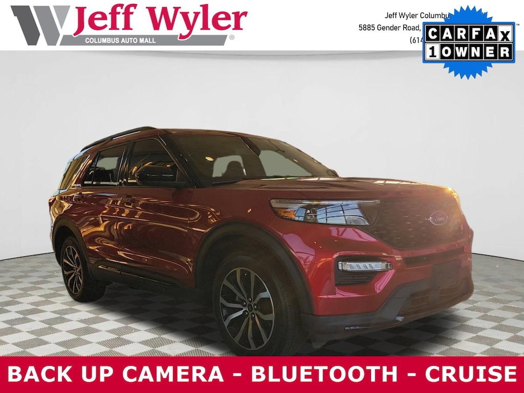 2023 Ford Explorer Red Metallic 3.0L EcoBoost V6 10-Speed Automatic ST 4WD 4WD. CARFAX One-Owner. Clean CARFAX.Come visit the all new Jeff Wyler Chevrolet of Columbus the official Home of the Fresh Start Program! See how easy it is drive your new vehicle home today.Ask about available certifications.