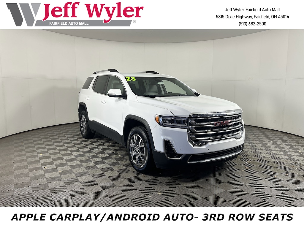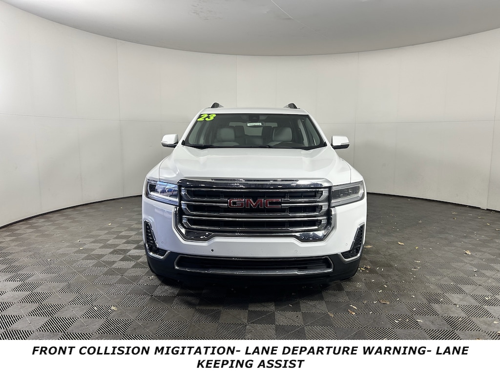 SUMMIT WHITE, SLT PREFERRED EQUIPMENT GROUP includes standard equipment, SEATS, FRONT BUCKET (STD), GMC PRO SAFETY PLUS includes (UHY) Automatic Emergency Braking, (UKJ) Front Pedestrian Braking, (TQ5) IntelliBeam headlamps, (UD5) Front and Rear Park Assist, (UHX) Lane Keep Assist with Lane Departure Warning, (UE4) Following Distance Indicator and (UEU) Forward Collision Alert; in addition to standard (UKC) Lane Change Alert with Side Blind Zone Alert and (UFG) Rear Cross Traffic Alert (Beginning with production starting on May 1, 2023, no longer standard content and cannot be ordered. Refer to (PCM) Acadia Pro Safety Plus. Beginning with start of production through July 24, 2022, certain vehicles will be forced to include (00Z) Not Equipped with Front and Rear Park Assist, which removes Front and Rear Park Assist. See dealer for details or the window label for the features on a specific vehicle.), ENGINE, 2.0L TURBO, 4-CYLINDER, SIDI with Variable Valve Timing (VVT) (228 hp [171 kW] @ 5000 rpm, 258 lb-ft of torque [349.8 N-m]) @ 1500 - 4000 rpm (STD), AXLE, 3.47 FINAL DRIVE RATIO, AUDIO SYSTEM, 8" DIAGONAL GMC INFOTAINMENT SYSTEM WITH NAVIGATION includes multi-touch display, AM/FM/SiriusXM stereo, Bluetooth streaming audio for music and most phones, Android Auto and Apple CarPlay capability for compatible phones, advanced voice recognition, in-vehicle apps, personalized profiles for infotainment and vehicle settings (STD), Wireless Apple CarPlay/Wireless Android Auto, Wipers, front intermittent with washers, Wiper, rear intermittent with washer.