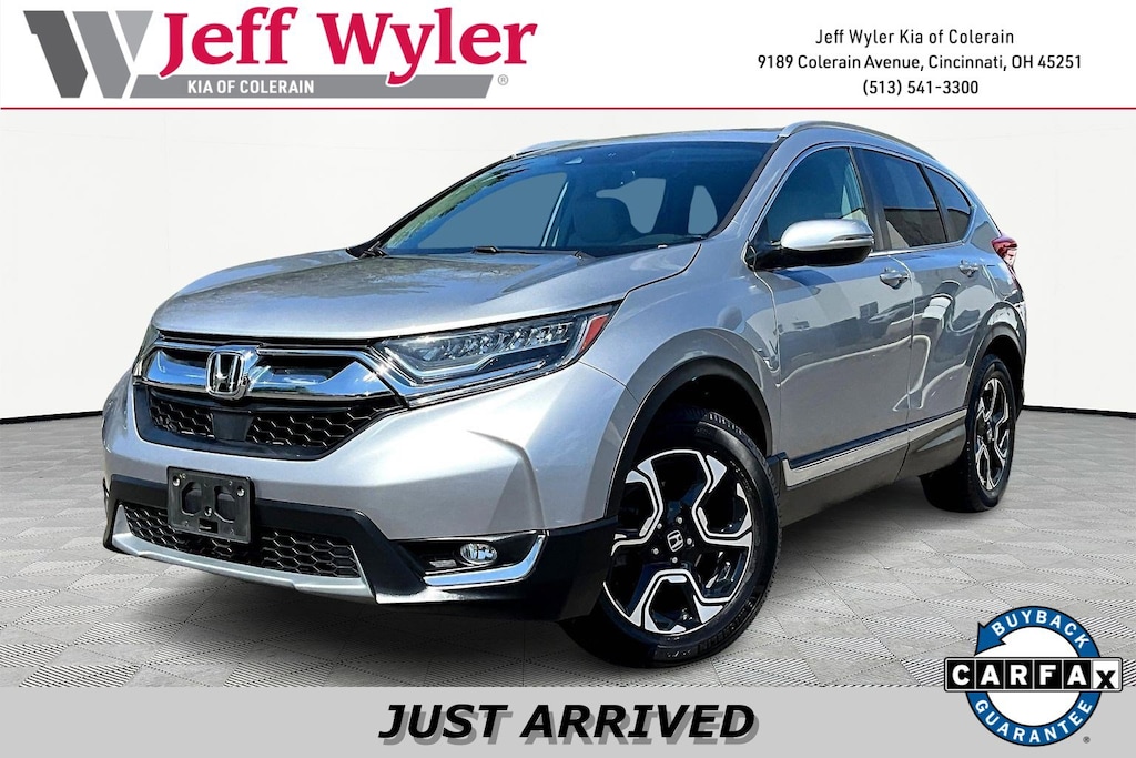 Jeff Wyler Kia of Colerain is pumped up to offer this terrific-looking 2017 Honda CR-V Touring in Lunar Silver Metallic. 18" Alloy Wheels, 4-Wheel Disc Brakes, 5.64 Axle Ratio, 9 Speakers, ABS brakes, Air Conditioning, Alloy wheels, AM/FM radio: SiriusXM, Apple CarPlay/Android Auto, Auto High-beam Headlights, Auto-dimming Rear-View mirror, Automatic temperature control, Blind Spot Information (BSI) System warning, Brake assist, Bumpers: body-color, Compass, Delay-off headlights, Driver door bin, Driver vanity mirror, Dual front impact airbags, Dual front side impact airbags, Electronic Stability Control, Exterior Parking Camera Rear, Four wheel independent suspension, Front anti-roll bar, Front Bucket Seats, Front Center Armrest, Front dual zone A/C, Front fog lights, Front reading lights, Fully automatic headlights, Garage door transmitter: HomeLink, Heated door mirrors, Heated Front Bucket Seats, Heated front seats, Illuminated entry, Leather Seat Trim, Leather Shift Knob, Low tire pressure warning, Memory seat, Navigation System, Occupant sensing airbag, Outside temperature display, Overhead airbag, Overhead console, Panic alarm, Passenger door bin, Passenger vanity mirror, Power door mirrors, Power driver seat, Power Liftgate, Power moonroof, Power passenger seat, Power steering, Power windows, Radio data system, Radio: AM/FM/HD/SiriusXM Audio System, Rain sensing wipers, Rear anti-roll bar, Rear seat center armrest, Rear window defroster, Rear window wiper, Remote keyless entry, Roof rack: rails only, Security system, Speed control, Speed-sensing steering, Speed-Sensitive Wipers, Split folding rear seat, Spoiler, Steering wheel mounted audio controls, Tachometer, Telescoping steering wheel, Tilt steering wheel, Traction control, Trip computer, Turn signal indicator mirrors, and Variably intermittent wipers Our PRE-OWNED vehicles are put through a rigorous 167- POINT QUALITY ASSURANCE INSPECTION along with an average amount of over $1,400.00 SPENT to recondition each vehicle so we can be sure to deliver you the highest quality vehicle like you deserve! ***ONLINE PRICE DOES NOT INCLUDE WYLER FAMILY FIRST PACKAGE***