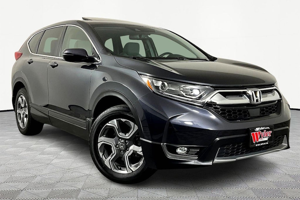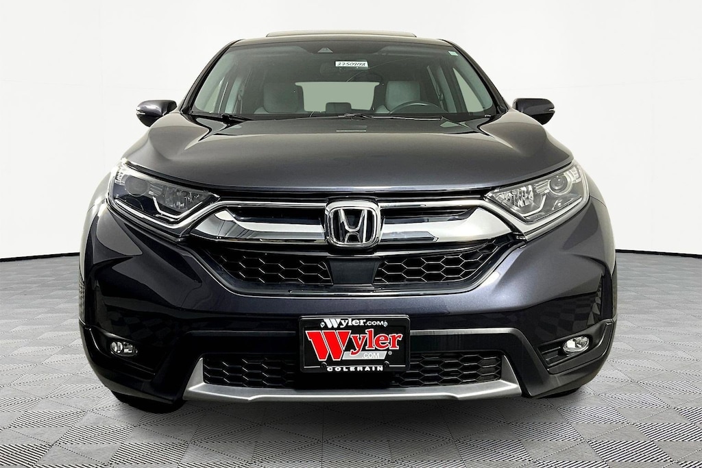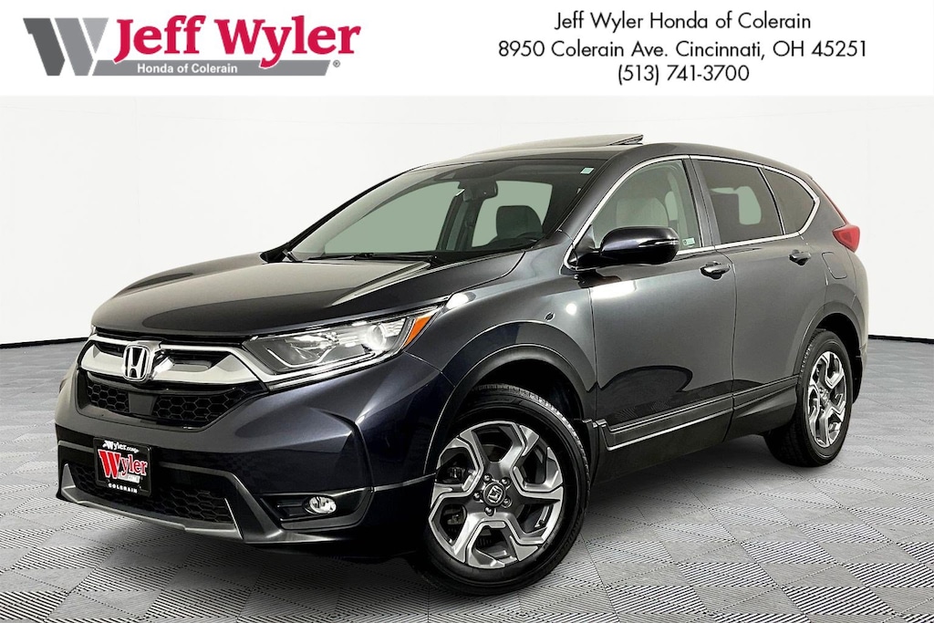 Jeff Wyler Honda of Colerain is excited to offer this handsome 2019 Honda CR-V EX-L in Modern Steel Metallic. Well equipped with: 18" Alloy Wheels, 4-Wheel Disc Brakes, 5.64 Axle Ratio, 8 Speakers, ABS brakes, Air Conditioning, Alloy wheels, AM/FM radio: SiriusXM, Apple CarPlay/Android Auto, Auto High-beam Headlights, Auto-dimming Rear-View mirror, Automatic temperature control, Blind Spot Information (BSI) System warning, Brake assist, Bumpers: body-color, Compass, Delay-off headlights, Driver door bin, Driver vanity mirror, Dual front impact airbags, Dual front side impact airbags, Electronic Stability Control, Exterior Parking Camera Rear, Forward collision: Collision Mitigation Braking System (CMBS) + FCW mitigation, Four wheel independent suspension, Front anti-roll bar, Front Bucket Seats, Front Center Armrest, Front dual zone A/C, Front fog lights, Front reading lights, Fully automatic headlights, Garage door transmitter: HomeLink, Heated door mirrors, Heated Front Bucket Seats, Heated front seats, Illuminated entry, Lane departure: Lane Keeping Assist System (LKAS) active, Leather Seat Trim, Leather Shift Knob, Low tire pressure warning, Memory seat, Occupant sensing airbag, Outside temperature display, Overhead airbag, Overhead console, Panic alarm, Passenger door bin, Passenger vanity mirror, Power door mirrors, Power driver seat, Power Liftgate, Power moonroof, Power passenger seat, Power steering, Power windows, Radio data system, Radio: AM/FM/SiriusXM Audio System, Rear anti-roll bar, Rear seat center armrest, Rear window defroster, Rear window wiper, Remote keyless entry, Security system, Speed control, Speed-sensing steering, Speed-Sensitive Wipers, Split folding rear seat, Spoiler, Steering wheel mounted audio controls, Tachometer, Telescoping steering wheel, Tilt steering wheel, Traction control, Trip computer, Turn signal indicator mirrors, and Variably intermittent wipers.
