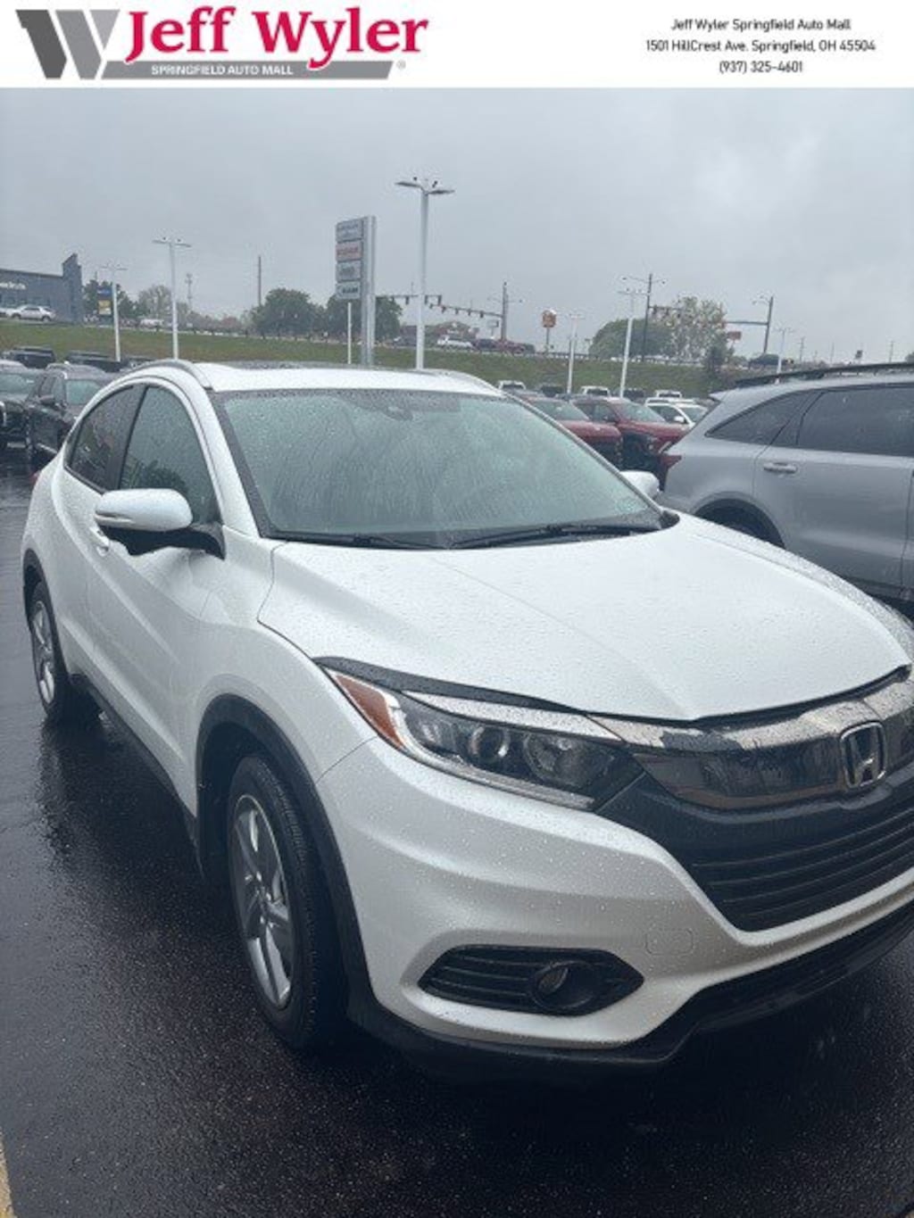 Jeff Wyler Springfield Auto Mall is very proud to offer this fantastic-looking 2019 Honda HR-V EX in White. Well equipped with: 4-Wheel Disc Brakes, 5.436 Axle Ratio, 6 Speakers, ABS brakes, Air Conditioning, Alloy wheels, AM/FM radio: SiriusXM, Apple CarPlay/Android Auto, Automatic temperature control, Brake assist, Bumpers: body-color, Cloth Seat Trim, Delay-off headlights, Driver door bin, Driver vanity mirror, Dual front impact airbags, Dual front side impact airbags, Electronic Stability Control, Emergency communication system, Exterior Parking Camera Rear, Forward collision: Collision Mitigation Braking System (CMBS) + FCW mitigation, Front anti-roll bar, Front Bucket Seats, Front Center Armrest, Front fog lights, Front reading lights, Front wheel independent suspension, Fully automatic headlights, Heated door mirrors, Heated Front Bucket Seats, Heated front seats, Illuminated entry, Lane departure: Lane Keeping Assist System (LKAS) active, Low tire pressure warning, Occupant sensing airbag, Outside temperature display, Overhead airbag, Panic alarm, Passenger door bin, Passenger vanity mirror, Power door mirrors, Power moonroof, Power steering, Power windows, Radio data system, Radio: AM/FM/HD Audio System (180-Watt), Rear anti-roll bar, Rear window defroster, Rear window wiper, Remote keyless entry, Roof rack: rails only, Security system, SiriusXM Radio, Speed control, Speed-sensing steering, Split folding rear seat, Spoiler, Steering wheel mounted audio controls, Tachometer, Telescoping steering wheel, Tilt steering wheel, Traction control, Trip computer, Turn signal indicator mirrors, Variably intermittent wipers, and Wheels: 17" Unique Silver-Painted Alloy. Ask about available certifications. Used vehicles 10 years of age or newer with less than 100,000 miles are eligible for the Wyler Assurance Program, but eligible vehicles must pass our reconditioning process and multi-point inspection. Provided the vehicle passes inspection, vehicles will be eligible for the 6 month/6,000 mile limited warranty. The 6 month/6,000 mile limited warranty is NOT available on AS-IS vehicles, wholesale vehicles, lease buyback/pass-thru vehicles or un-inspected vehicles. Note that this program can also apply to vehicles where the remaining factory coverage is less than 6 months or 6,000 miles. Please check the Federal Trade Commission (FTC) Buyers guide on the vehicle for full details as to whether or not warranty coverage may apply. Contact Dealer for additional details. The Wyler Assurance 6 month/6,000 Mile limited warranty ends 6 months from the date of the Retail Purchase Agreement (BUYERS ORDER) or when the vehicle's odometer registers 6,000 additional miles to the mileage listed on the BUYERS ORDER, whichever comes first. Your Deductible - The warranty holder on your contract pays the first $100 of each covered repair.