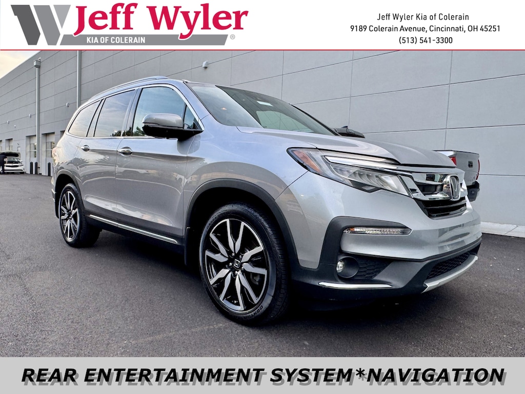 Jeff Wyler Kia of Colerain is proud to offer this superb-looking 2019 Honda Pilot Elite in Lunar Silver Metallic. 10 Speakers, 3rd row seats: split-bench, 4-Wheel Disc Brakes, 4.334 Axle Ratio, A/V remote: CabinControl, ABS brakes, Air Conditioning, Alloy wheels, AM/FM radio: SiriusXM, Apple CarPlay/Android Auto, Auto High-beam Headlights, Auto-dimming door mirrors, Auto-dimming Rear-View mirror, Automatic temperature control, Blind Spot Information (BSI) System warning, Brake assist, Bumpers: body-color, Compass, Delay-off headlights, Driver door bin, Driver vanity mirror, Dual front impact airbags, Dual front side impact airbags, Electronic Stability Control, Emergency communication system: HondaLink, Exterior Parking Camera Rear, Forward collision: Collision Mitigation Braking System (CMBS) + FCW mitigation, Four wheel independent suspension, Front anti-roll bar, Front Bucket Seats, Front Center Armrest, Front dual zone A/C, Front fog lights, Front reading lights, Fully automatic headlights, Garage door transmitter: HomeLink, Headphones, Heated & Ventilated Front Bucket Seats, Heated door mirrors, Heated front seats, Heated rear seats, Heated steering wheel, Illuminated entry, Lane departure: Lane Keeping Assist System (LKAS) active, Low tire pressure warning, Memory seat, Navigation system: Honda Satellite-Linked Navigation System, Occupant sensing airbag, Outside temperature display, Overhead airbag, Overhead console, Panic alarm, Passenger door bin, Passenger vanity mirror, Perforated Leather-Trimmed Seats, Power door mirrors, Power driver seat, Power Liftgate, Power moonroof, Power passenger seat, Power steering, Power windows, Radio data system, Radio: AM/FM Premium Audio System, Rain sensing wipers, Rear air conditioning, Rear anti-roll bar, Rear reading lights, Rear window defroster, Rear window wiper, Reclining 3rd row seat, Remote keyless entry, Roof rack: rails only, Security system, Speed control, Speed-sensing steering, Speed-Sensitive Wipers, Split folding rear seat, Spoiler, Steering wheel mounted audio controls, Tachometer, Telescoping steering wheel, Tilt steering wheel, Traction control, Trip computer, Turn signal indicator mirrors, Variably intermittent wipers, Ventilated front seats, and Wheels: 20" Machine-Finished Alloy Our PRE-OWNED vehicles are put through a rigorous 167- POINT QUALITY ASSURANCE INSPECTION along with an average amount of over $1,400.00 SPENT to recondition each vehicle so we can be sure to deliver you the highest quality vehicle like you deserve! ***ONLINE PRICE DOES NOT INCLUDE WYLER FAMILY FIRST PACKAGE***