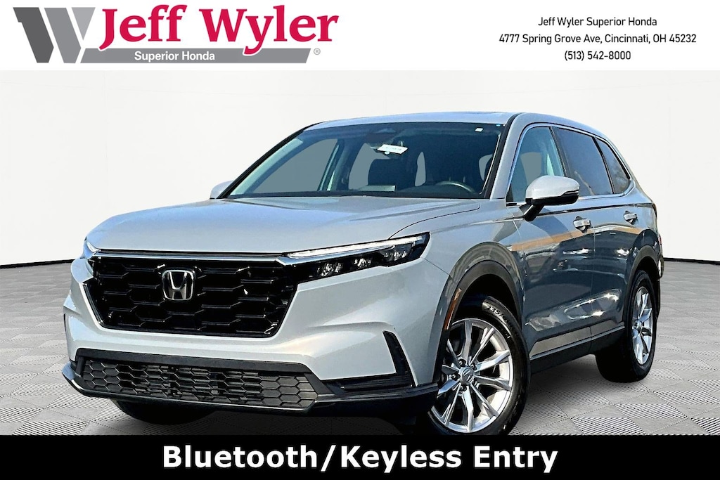 Jeff Wyler Superior Honda is very proud to offer this outstanding 2023 Honda CR-V EX in sparkle silver metallic. BLUETOOTH, MOONROOF SUNROOF, CLEAN CARFAX...NO ACCIDENTS, HONDA CERTIFIED!, REMAINDER OF FACTORY WARRANTY, RECENT SUPERIOR TRADE, BOUGHT, SERVICED AND TRADED AT SUPERIOR, and ONE OWNER CR-V EX, HondaTrue Certified Certified, 4D Sport Utility, 1.5L I4 DOHC 16V, CVT, AWD, sparkle silver metallic, Black Cloth, 4-Wheel Disc Brakes, 5.64 Axle Ratio, 6 Speakers, ABS brakes, Adaptive Cruise Control: Adaptive Cruise Control (ACC) with Low-Speed Follow, Air Conditioning, Alloy wheels, Apple CarPlay/Android Auto, Auto High-beam Headlights, Automatic temperature control, Brake assist, Bumpers: body-color, Cloth Seat Trim, Compass, Delay-off headlights, Driver door bin, Driver vanity mirror, Dual front impact airbags, Dual front side impact airbags, Electronic Stability Control, Exterior Parking Cameras, Four wheel independent suspension, Front anti-roll bar, Front Bucket Seats, Front Center Armrest, Front dual zone A/C, Front reading lights, Fully automatic headlights, Heated door mirrors, Heated Front Bucket Seats, Heated front seats, Illuminated entry, Knee airbag, Low tire pressure warning, Occupant sensing airbag, Outside temperature display, Overhead airbag, Overhead console, Panic alarm, Passenger door bin, Passenger vanity mirror, Power door mirrors, Power driver seat, Power moonroof, Power steering, Power windows, Radio data system, Radio: 240-Watt AM/FM Audio System, Rear anti-roll bar, Rear reading lights, Rear seat center armrest, Rear side impact airbag, Rear window defroster, Rear window wiper, Remote keyless entry, Security system, Speed control, Speed-sensing steering, Speed-Sensitive Wipers, Split folding rear seat, Spoiler, Steering wheel mounted audio controls, Tachometer, Telescoping steering wheel, Tilt steering wheel, Traction control, Trip computer, Turn signal indicator mirrors, Variably intermittent wipers, and Wheels: 18" Sparkle Silver Metallic Our PRE-OWNED vehicles are put through a rigorous 167- POINT QUALITY ASSURANCE INSPECTION along with an average amount of over $1,400.00 SPENT to recondition each vehicle so we can be sure to deliver you the highest quality vehicle like you deserve! ***ONLINE PRICE DOES NOT INCLUDE WYLER FAMILY FIRST PACKAGE*** Stop by 4777 Spring Grove Ave. Road to see for yourself, or give us a call @ 283-209-1858 to schedule your test drive!Vehicle pricing includes all offers and incentives. Due to limited inventory, offers and pricing are all subject to change. Tax, Title, Tags and $387 doc fees are not included in vehicle price shown and must be paid by the purchaser. Doc fees vary by location. Financing w/approved credit. Mileage est. Based on current EPA estimates reflecting new EPA methods beginning w/ 2008 models. For comparison only. Do not compare to pre 2008 models. Actual mileage may vary based on how you drive and maintain your vehicle. Information on this site includes 3rd party data believed to be reliable, subject to change without notice. Jeff Wyler reserves the right to correct any errors and/or omissions in the compilation or presentation of this data and makes no representations express or implied to any prospective purchaser as to the vehicle's condition, specifications, history, equipment or equipment function, price or warranties. This vehicle may be subject to an open recall that has not been repaired. Please consult safercar.gov for more information on the current status. It is the responsibility of purchaser to confirm any data prior to purchase. Other than MSRP, all offers only apply to this vehicle and are subject to change. Vehicle prices are subject to change and all vehicles are subject to prior sale and may not be available when you are ready to purchase. Prices listed on any other website may not be accepted. Dealership advertises the sale of vehicles through a number of different channels and cannot always control when they are updated. Wyle