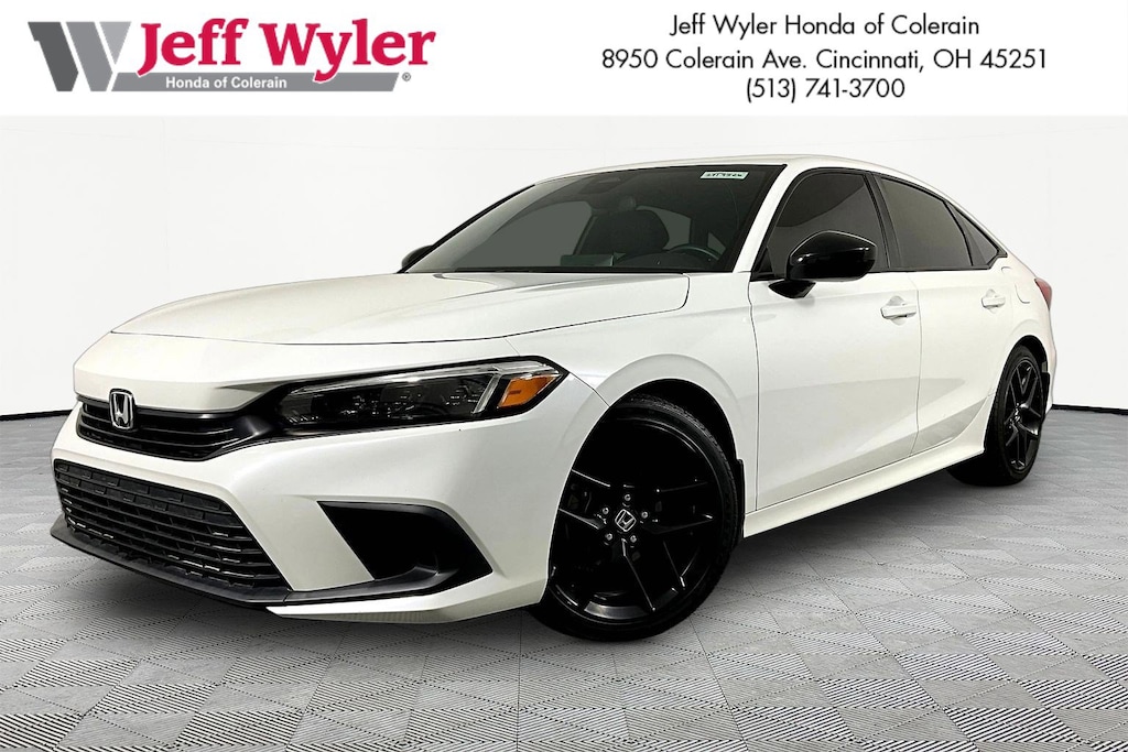 Jeff Wyler Honda of Colerain is proud to offer this beautiful-looking 2023 Honda Civic Sport in Platinum White Pearl. Well equipped with: 4-Wheel Disc Brakes, 8 Speakers, ABS brakes, Adaptive Cruise Control: Adaptive Cruise Control (ACC) with Low-Speed Follow, Air Conditioning, Alloy wheels, AM/FM radio, Apple CarPlay/Android Auto, Auto High-beam Headlights, Automatic temperature control, Brake assist, Bumpers: body-color, Cloth Seat Trim, Delay-off headlights, Driver door bin, Driver vanity mirror, Dual front impact airbags, Dual front side impact airbags, Electronic Stability Control, Emergency communication system: HondaLink, Exterior Parking Camera Rear, Four wheel independent suspension, Front anti-roll bar, Front Bucket Seats, Front Center Armrest, Front reading lights, Fully automatic headlights, Illuminated entry, Knee airbag, Leather Shift Knob, Leather steering wheel, Low tire pressure warning, Occupant sensing airbag, Outside temperature display, Overhead airbag, Panic alarm, Passenger door bin, Passenger vanity mirror, Power door mirrors, Power steering, Power windows, Radio data system, Radio: 180-Watt Audio System w/8 Speakers, Rear anti-roll bar, Rear side impact airbag, Rear window defroster, Remote keyless entry, Security system, Speed control, Speed-sensing steering, Steering wheel mounted audio controls, Tachometer, Telescoping steering wheel, Tilt steering wheel, Traction control, Trip computer, and Wheels: 18" Gloss Black Alloy.