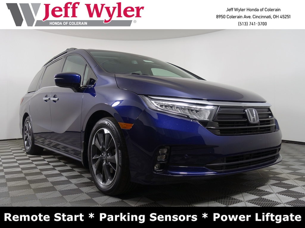 Jeff Wyler Honda of Colerain is pumped up to offer this terrific-looking 2023 Honda Odyssey Elite in Crystal Black Pearl. Well equipped with: 11 Speakers, 3.61 Axle Ratio, 3rd row seats: split-bench, 4-Wheel Disc Brakes, A/V remote: CabinControl, ABS brakes, Adaptive Cruise Control: Adaptive Cruise Control (ACC) with Low-Speed Follow, Air Conditioning, Alloy wheels, AM/FM radio: SiriusXM, Anti-whiplash front head restraints, Apple CarPlay/Android Auto, Auto High-beam Headlights, Auto-dimming door mirrors, Auto-dimming Rear-View mirror, Automatic temperature control, Blind Spot Information (BSI) System warning, Brake assist, Bumpers: body-color, CD player, Compass, Delay-off headlights, Driver door bin, Driver vanity mirror, Driver's Seat Mounted Armrest, Dual front impact airbags, Dual front side impact airbags, DVD-Audio, Electronic Stability Control, Emergency communication system: HondaLink, Exterior Parking Camera Rear, Four wheel independent suspension, Front anti-roll bar, Front Bucket Seats, Front dual zone A/C, Front fog lights, Front reading lights, Fully automatic headlights, Garage door transmitter: HomeLink, Headphones, Heated door mirrors, Heated Front Bucket Seats, Heated front seats, Heated steering wheel, Illuminated entry, Knee airbag, Lane departure: Lane Keeping Assist System (LKAS) active, Leather Seat Trim, Leather steering wheel, Low tire pressure warning, Memory seat, Navigation system: Honda Satellite-Linked Navigation System, Occupant sensing airbag, Outside temperature display, Overhead airbag, Overhead console, Panic alarm, Passenger door bin, Passenger seat mounted armrest, Passenger vanity mirror, Power door mirrors, Power driver seat, Power Liftgate, Power moonroof, Power passenger seat, Power steering, Power windows, Radio data system, Radio: 550-Watt AM/FM/HD Premium Audio System, Rain sensing wipers, Rear air conditioning, Rear anti-roll bar, Rear audio controls, Rear reading lights, Rear seat center armrest, Rear window defroster, Rear window wiper, Reclining 3rd row seat, Remote keyless entry, Security system, Speed control, Speed-sensing steering, Speed-Sensitive Wipers, Split folding rear seat, Spoiler, Steering wheel mounted audio controls, Tachometer, Telescoping steering wheel, Tilt steering wheel, Traction control, Trip computer, Turn signal indicator mirrors, Variably intermittent wipers, and Wheels: 19" Unique Machine-Finished Alloy.