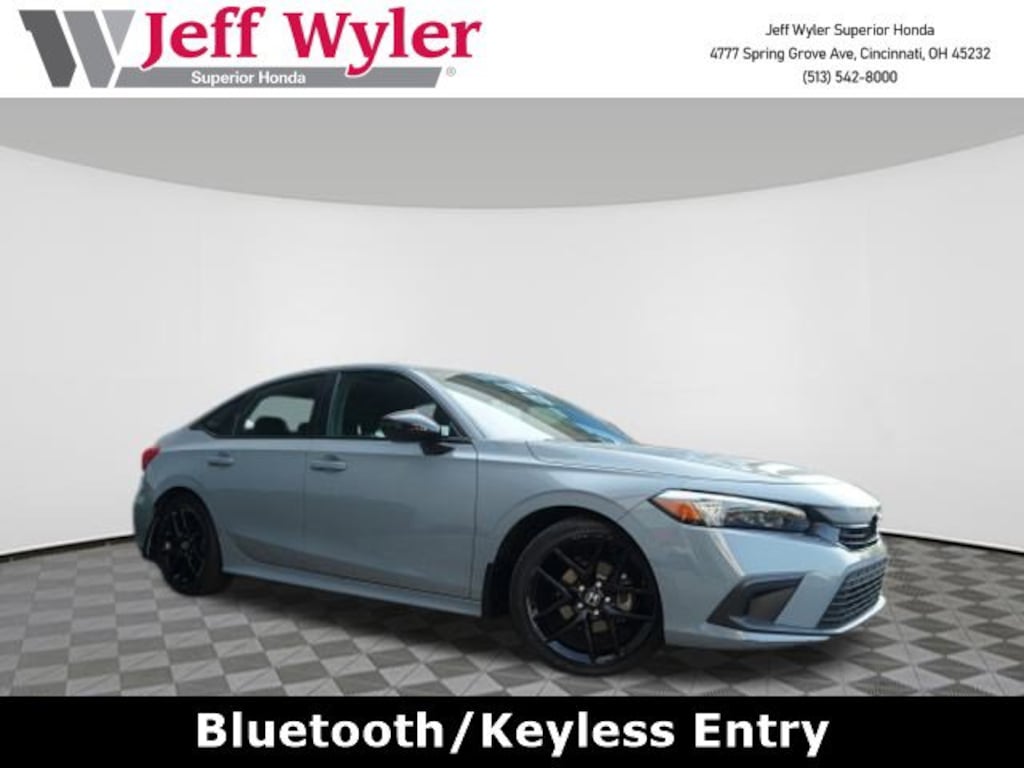 Jeff Wyler Superior Honda is very proud to offer this superb 2024 Honda Civic Sport in Meteorite Gray Metallic. BLUETOOTH, CLEAN CARFAX...NO ACCIDENTS, HONDA CERTIFIED!, REMAINDER OF FACTORY WARRANTY, RECENT SUPERIOR TRADE, ONE OWNER, Apple CarPlay, and Android Auto Civic Sport, HondaTrue Certified Certified, 4D Sedan, 2.0L I4 DOHC 16V i-VTEC, CVT, FWD, Meteorite Gray Metallic, 4-Wheel Disc Brakes, 8 Speakers, ABS brakes, Adaptive Cruise Control: Adaptive Cruise Control (ACC) with Low-Speed Follow, Air Conditioning, Alloy wheels, AM/FM radio, Apple CarPlay/Android Auto, Auto High-beam Headlights, Automatic temperature control, Brake assist, Bumpers: body-color, Cloth/Leatherette Seating Surfaces, Delay-off headlights, Driver door bin, Driver vanity mirror, Dual front impact airbags, Dual front side impact airbags, Electronic Stability Control, Emergency communication system: HondaLink, Exterior Parking Cameras, Four wheel independent suspension, Front anti-roll bar, Front Bucket Seats, Front Center Armrest, Front reading lights, Fully automatic headlights, Illuminated entry, Knee airbag, Leather Shift Knob, Leather steering wheel, Low tire pressure warning, Occupant sensing airbag, Outside temperature display, Overhead airbag, Panic alarm, Passenger door bin, Passenger vanity mirror, Power door mirrors, Power steering, Power windows, Radio data system, Radio: 180-Watt Audio System, Rear anti-roll bar, Rear side impact airbag, Rear window defroster, Remote keyless entry, Security system, Speed control, Speed-sensing steering, Steering wheel mounted audio controls, Tachometer, Telescoping steering wheel, Tilt steering wheel, Traction control, Trip computer, and Wheels: 18" Gloss Black Alloy Our PRE-OWNED vehicles are put through a rigorous 167- POINT QUALITY ASSURANCE INSPECTION along with an average amount of over $1,400.00 SPENT to recondition each vehicle so we can be sure to deliver you the highest quality vehicle like you deserve! ***ONLINE PRICE DOES NOT INCLUDE WYLER FAMILY FIRST PACKAGE*** Stop by 4777 Spring Grove Ave. Road to see for yourself, or give us a call @ 283-209-1858 to schedule your test drive!