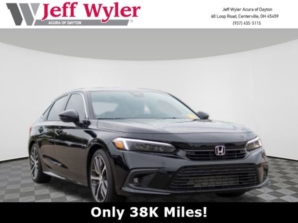 Jeff Wyler Acura of Dayton is honored to offer this good-looking 2024 Honda Civic Touring in Pearl Black. Black Leather, 12 Speakers, 4-Wheel Disc Brakes, ABS brakes, Adaptive Cruise Control: Adaptive Cruise Control (ACC) with Low-Speed Follow, Air Conditioning, Alloy wheels, AM/FM radio: SiriusXM, Apple CarPlay/Android Auto, Auto High-beam Headlights, Auto-dimming Rear-View mirror, Automatic temperature control, Blind Spot Information (BSI) System warning, Bose Premium Audio System, Brake assist, Bumpers: body-color, Compass, Delay-off headlights, Driver door bin, Driver vanity mirror, Dual front impact airbags, Dual front side impact airbags, Electronic Stability Control, Emergency communication system: HondaLink, Exterior Parking Camera Rear, Four wheel independent suspension, Front anti-roll bar, Front Bucket Seats, Front Center Armrest, Front dual zone A/C, Front fog lights, Front reading lights, Fully automatic headlights, Garage door transmitter: HomeLink, Heated door mirrors, Heated Front Bucket Seats, Heated front seats, Illuminated entry, Knee airbag, Leather Shift Knob, Leather steering wheel, Leather-Trimmed Seating Surfaces, Low tire pressure warning, Navigation system: Honda Satellite-Linked Navigation System, Occupant sensing airbag, Outside temperature display, Overhead airbag, Overhead console, Panic alarm, Passenger door bin, Passenger vanity mirror, Power door mirrors, Power driver seat, Power moonroof, Power passenger seat, Power steering, Power windows, Radio data system, Rain sensing wipers, Rear anti-roll bar, Rear seat center armrest, Rear side impact airbag, Rear window defroster, Remote keyless entry, Security system, Speed control, Speed-sensing steering, Split folding rear seat, Steering wheel mounted audio controls, Tachometer, Telescoping steering wheel, Tilt steering wheel, Traction control, Trip computer, Turn signal indicator mirrors, Variably intermittent wipers, and Wheels: 18" Alloy w/Gloss Shark Gray Inserts Our PRE-OWNED vehicles are put through a rigorous 167- POINT QUALITY ASSURANCE INSPECTION along with an average amount of over $1,400.00 SPENT to recondition each vehicle so we can be sure to deliver you the highest quality vehicle like you deserve! ***ONLINE PRICE DOES NOT INCLUDE WYLER FAMILY FIRST PACKAGE*** Stop by 4136 Shelbyville Road to see for yourself, or give us a call @ 502-897-3151 to schedule your test drive! CARFAX One-Owner. Clean CARFAX.