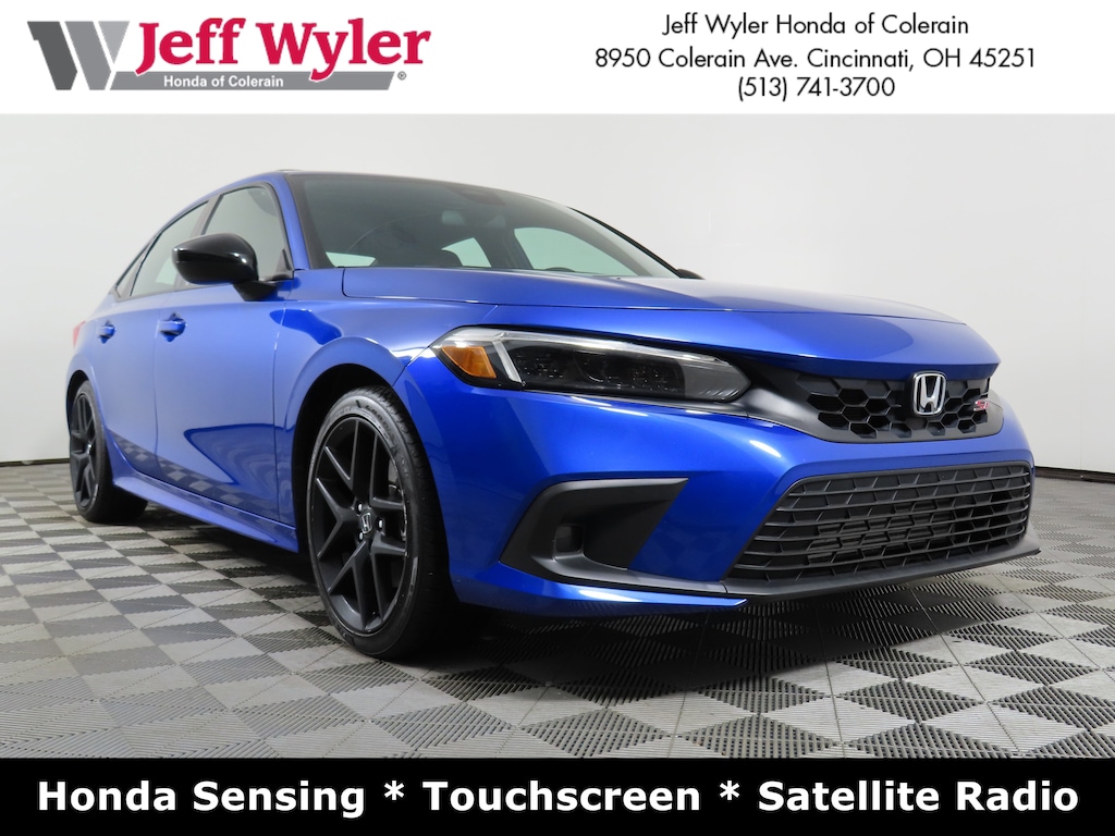 Jeff Wyler Honda of Colerain is pleased to offer this gorgeous 2024 Honda Civic Si in Aegean Blue Metallic. Well equipped with: 12 Speakers, 4-Wheel Disc Brakes, ABS brakes, Air Conditioning, Alloy wheels, AM/FM radio: SiriusXM, Apple CarPlay/Android Auto, Auto High-beam Headlights, Automatic temperature control, Blind Spot Information (BSI) System warning, Brake assist, Bumpers: body-color, Cloth Seating Surfaces, Delay-off headlights, Driver door bin, Driver vanity mirror, Dual front impact airbags, Dual front side impact airbags, Electronic Stability Control, Exterior Parking Camera Rear, Four wheel independent suspension, Front anti-roll bar, Front Bucket Seats, Front Center Armrest, Front dual zone A/C, Front reading lights, Fully automatic headlights, Heated door mirrors, Illuminated entry, Knee airbag, Leather Shift Knob, Leather steering wheel, Low tire pressure warning, Occupant sensing airbag, Outside temperature display, Overhead airbag, Overhead console, Panic alarm, Passenger door bin, Passenger vanity mirror, Power door mirrors, Power moonroof, Power steering, Power windows, Radio data system, Radio: BOSE Premium Sound System, Rear anti-roll bar, Rear seat center armrest, Rear side impact airbag, Rear window defroster, Remote keyless entry, Security system, Speed control, Speed-sensing steering, Split folding rear seat, Spoiler, Steering wheel mounted audio controls, Tachometer, Telescoping steering wheel, Tilt steering wheel, Traction control, Trip computer, Variably intermittent wipers, and Wheels: 18" Matte Black Alloy.