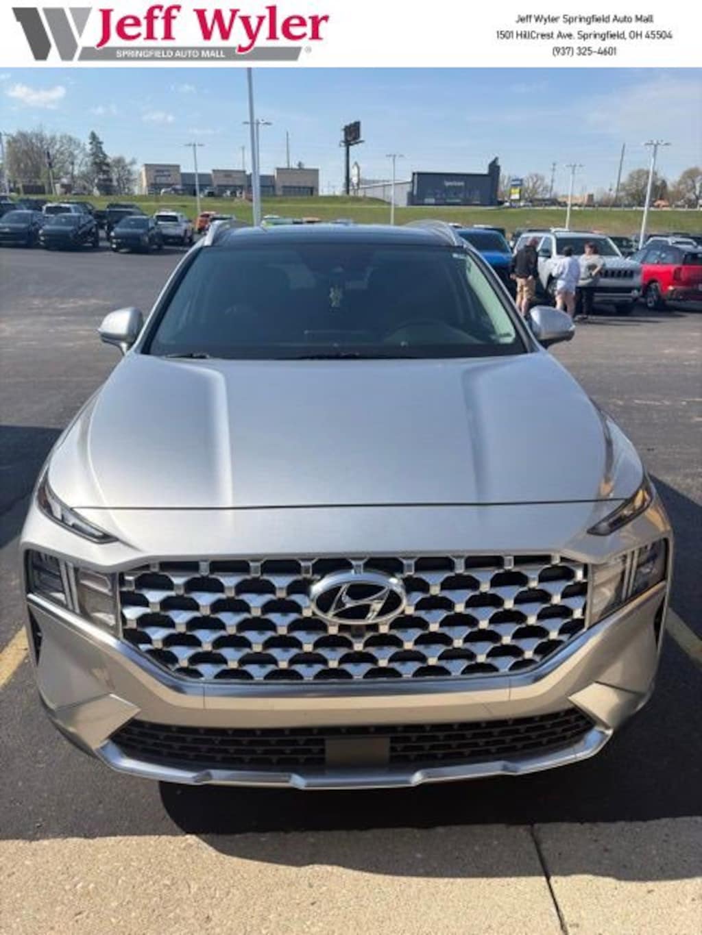 Jeff Wyler Springfield Auto Mall is honored to offer this stunning 2023 Hyundai Santa Fe SEL in Shimmering Silver Pearl. Well equipped with: Premium Package (12.3" LCD Multi-Information Display, 8-Way Power Passenger Seat, Acoustic-Laminated Front Side Windows, Auto-Dimming Rear-View Mirror, Blind-Spot View Monitor, Chrome Front & Rear Bumper Accents, Chrome Interior Accents, H-Tex Leatherette Seat Trim, harman/kardon® Audio System, LED Interior Lights, LED Taillights, Manual Rear Side Sunshades, Option Group 02, Panoramic Sunroof, Power Release 2nd Row Seats, Silver Front Grille, and Surround View Monitor), 18" x 7.5J Alloy Wheels, 4-Wheel Disc Brakes, 6 Speakers, ABS brakes, Air Conditioning, Alloy wheels, AM/FM radio: SiriusXM, Apple CarPlay & Android Auto, Auto High-beam Headlights, Automatic temperature control, Axle Ratio: 3.798, Brake assist, Bumper Applique, Bumpers: body-color, Cargo Net, Carpeted Floor Mats, Delay-off headlights, Driver door bin, Driver vanity mirror, Dual front impact airbags, Dual front side impact airbags, Electronic Stability Control, Emergency communication system, Exterior Parking Camera Rear, Four wheel independent suspension, Front anti-roll bar, Front Bucket Seats, Front Center Armrest, Front dual zone A/C, Front reading lights, Fully automatic headlights, Heated door mirrors, Heated Front Bucket Seats, Heated front seats, Illuminated entry, Leather steering wheel, Low tire pressure warning, Mudguards, Navigation System, Occupant sensing airbag, Outside temperature display, Overhead airbag, Overhead console, Panic alarm, Passenger door bin, Passenger vanity mirror, Power door mirrors, Power driver seat, Power Liftgate, Power steering, Power windows, Radio: AM/FM Display Audio, Rear anti-roll bar, Rear seat center armrest, Rear window defroster, Rear window wiper, Remote keyless entry, Security system, Speed control, Speed-sensing steering, Split folding rear seat, Spoiler, Stain-Resistant Cloth Seat Trim, Steering wheel mounted audio controls, Tachometer, Telescoping steering wheel, Tilt steering wheel, Traction control, Trip computer, Turn signal indicator mirrors, and Variably intermittent wipers. Ask about available certifications. Used vehicles 10 years of age or newer with less than 100,000 miles are eligible for the Wyler Assurance Program, but eligible vehicles must pass our reconditioning process and multi-point inspection. Provided the vehicle passes inspection, vehicles will be eligible for the 6 month/6,000 mile limited warranty. The 6 month/6,000 mile limited warranty is NOT available on AS-IS vehicles, wholesale vehicles, lease buyback/pass-thru vehicles or un-inspected vehicles. Note that this program can also apply to vehicles where the remaining factory coverage is less than 6 months or 6,000 miles. Please check the Federal Trade Commission (FTC) Buyers guide on the vehicle for full details as to whether or not warranty coverage may apply. Contact Dealer for additional details. The Wyler Assurance 6 month/6,000 Mile limited warranty ends 6 months from the date of the Retail Purchase Agreement (BUYERS ORDER) or when the vehicle's odometer registers 6,000 additional miles to the mileage listed on the BUYERS ORDER, whichever comes first. Your Deductible - The warranty holder on your contract pays the first $100 of each covered repair.