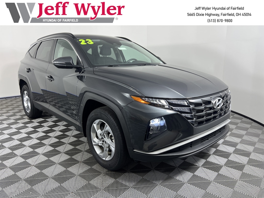 CARFAX One-Owner. Clean CARFAX. Jeff Wyler Hyundai of Fairfield is pumped up to offer this terrific-looking 2023 Hyundai Tucson SEL in Portofino Gray. Well equipped with: Option Group 01, Hyundai Certified Used Vehicles Certified, AWD, Android Auto, Apple CarPlay, CALL NOW FOR YOUR VIP APPOINTMENT 513-870-9800, FULLY SERVICED w/RECORDS, GUARANTEED FINANCING!! NO MATTER YOUR SITUATION WE CAN GET AN APPROVAL!!, THE #1 Volume dealer in the region! Come see why for yourself Today!!, WE PAY MORE FOR YOUR TRADE!!, 3.648 Axle Ratio, 4-Wheel Disc Brakes, 6 Speakers, ABS brakes, Air Conditioning, Alloy wheels, AM/FM radio: SiriusXM, Apple CarPlay & Android Auto, Auto High-beam Headlights, Brake assist, Bumpers: body-color, Cargo Net, Cargo Tray, Carpeted Floor Mats, Delay-off headlights, Driver door bin, Driver vanity mirror, Dual front impact airbags, Dual front side impact airbags, Electronic Stability Control, Emergency communication system: Blue Link Connected Car Service (3-year complimentary subscription), First Aid Kit, Four wheel independent suspension, Front and Rear Mudguards, Front anti-roll bar, Front Bucket Seats, Front Center Armrest, Front reading lights, Fully automatic headlights, H-Tex Seat Trim, Heated door mirrors, Heated Front Bucket Seats, Heated front seats, Illuminated entry, Low tire pressure warning, Occupant sensing airbag, Outside temperature display, Overhead airbag, Overhead console, Panic alarm, Passenger door bin, Passenger vanity mirror, Power door mirrors, Power driver seat, Power Liftgate, Power steering, Power windows, Radio data system, Radio: AM/FM/HD/SiriusXM Audio System, Rear anti-roll bar, Rear Bumper Applique, Rear seat center armrest, Rear window defroster, Rear window wiper, Remote keyless entry, Roof rack: rails only, Security system, Speed control, Split folding rear seat, Spoiler, Stain & Odor Resistant Cloth Seat Trim, Steering wheel mounted audio controls, Tachometer, Telescoping steering wheel, Tilt steering wheel, Traction control, Trip computer, Turn signal indicator mirrors, Variably intermittent wipers, and Wheels: 17" x 7.0J" Alloy. Certified. Hyundai Certified Used Vehicles Details: * 173+ Point Inspection * Limited Warranty: 60 Month/60,000 Mile (whichever comes first) from original in-service date * Warranty Deductible: $50 * Includes 10-year/Unlimited Mileage Roadside Assistance with Rental Car and Trip Interruption Reimbursement; Please See Dealers for Specific Vehicle Eligibility Requirements. 10-Year/100,000 Mile Hybrid/EV Battery Warranty. 3-Months SiriusXM Trial Subscription. Complimentary 1 Year (Connected Care & Remote Pkgs). * Vehicle History * Powertrain Limited Warranty: 120 Month/100,000 Mile (whichever comes first) from original in-service date * Roadside AssistanceTO CHECK ON THE AVAILABILITY OF THIS VEHICLE REACH OUT TO ONE OF OUR TEAM MEMBERS!! ALSO SHOP ONLINE AT https://www.jeffwylerhyundaioffairfield.com/ Proudly Serving: Cincinnati, Dayton, Columbus, Louisville, Lexington, Indianapolis, Hamilton, Florence, Alexandria, Beavercreek, Springdale, West Chester, Monroe, Fairfield, Kenwood, Newport and all of greater Cincinnati Ohio, Indiana, and Northern Kentucky.