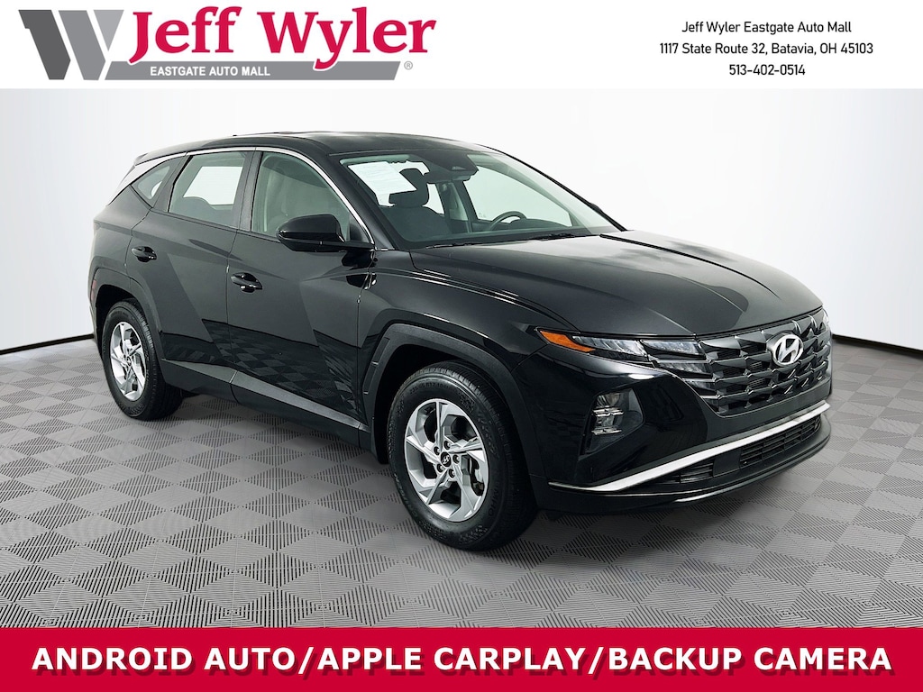 Jeff Wyler Eastgate Auto Mall is pumped up to offer this charming 2024 Hyundai Tucson SE in Black Pearl. Well equipped with: Option Group 01, 3.648 Axle Ratio, 4-Wheel Disc Brakes, 6 Speakers, ABS brakes, Air Conditioning, All Season Fitted Liners, Alloy wheels, AM/FM radio, Apple CarPlay & Android Auto, Auto High-beam Headlights, Brake assist, Bumpers: body-color, Cargo Cover, Carpeted Floor Mats, Delay-off headlights, Driver door bin, Driver vanity mirror, Dual front impact airbags, Dual front side impact airbags, Electronic Stability Control, Exterior Parking Camera Rear, First Aid Kit, Four wheel independent suspension, Front anti-roll bar, Front Bucket Seats, Front Center Armrest, Front reading lights, Fully automatic headlights, Illuminated entry, Low tire pressure warning, Occupant sensing airbag, Outside temperature display, Overhead airbag, Overhead console, Panic alarm, Passenger door bin, Passenger vanity mirror, Power door mirrors, Power steering, Power windows, Radio data system, Radio: AM/FM/HD Audio System, Rear anti-roll bar, Rear seat center armrest, Rear side impact airbag, Rear window defroster, Rear window wiper, Remote keyless entry, Security system, Speed control, Split folding rear seat, Spoiler, Stain & Odor Resistant Cloth Seat Trim, Steering wheel mounted audio controls, Tachometer, Telescoping steering wheel, Tilt steering wheel, Traction control, Trip computer, Variably intermittent wipers, and Wheels: 17" x 7.0J" Alloy. CARFAX One-Owner. Clean CARFAX. Ask about available certifications. Used vehicles 10 years of age or newer with less than 100,000 miles are eligible for the Wyler Assurance Program, but eligible vehicles must pass our reconditioning process and multi-point inspection. Provided the vehicle passes inspection, vehicles will be eligible for the 6 month/6,000 mile limited warranty. The 6 month/6,000 mile limited warranty is NOT available on AS-IS vehicles, wholesale vehicles, lease buyback/pass-thru vehicles or un-inspected vehicles. Note that this program can also apply to vehicles where the remaining factory coverage is less than 6 months or 6,000 miles. Please check the Federal Trade Commission (FTC) Buyers guide on the vehicle for full details as to whether or not warranty coverage may apply. Contact Dealer for additional details. The Wyler Assurance 6 month/6,000 Mile limited warranty ends 6 months from the date of the Retail Purchase Agreement (BUYERS ORDER) or when the vehicle's odometer registers 6,000 additional miles to the mileage listed on the BUYERS ORDER, whichever comes first. Your Deductible - The warranty holder on your contract pays the first $100 of each covered repair.