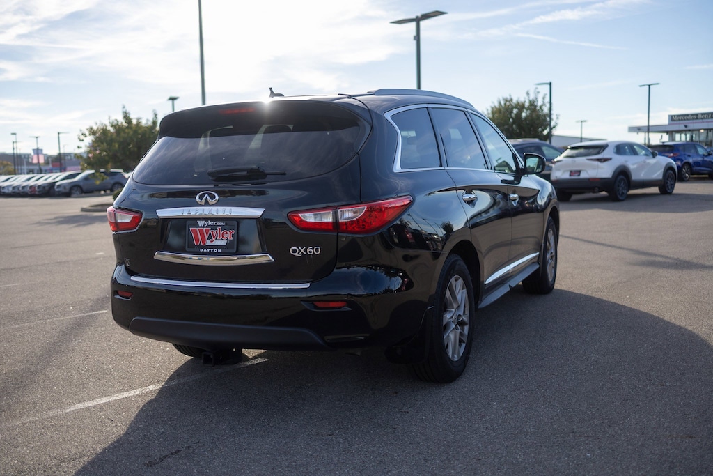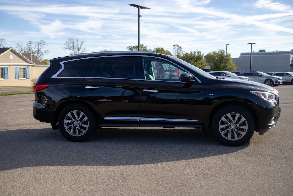 Jeff Wyler Acura of Dayton is pumped up to offer this superb 2015 INFINITI QX60 in Black Obsidian. Cargo Package (First Aid Kit, Rear Cargo Protector, and Tonneau Cover), Premium Package (2-Way Driver's Seat Power Lumbar Support, Dual Occupant Memory System, Enhanced Intelligent Key Memory, Entry & Exit Assist, Heated Steering Wheel, Outside Mirrors w/Reverse Tilt-Down Feature, Radio: AM/FM/CD/DVD w/MP3 Playback Capability, and Remote Engine Start), 18" 5-Spoke Aluminum Alloy Wheels, 3rd row seats: bench, 4-Wheel Disc Brakes, 5.17 Axle Ratio, 6 Speakers, ABS brakes, Activation Disclaimer, Air Conditioning, Alloy wheels, AM/FM radio: SiriusXM, AM/FM/CD/MP3 Audio System, Auto-dimming Rear-View mirror, Automatic temperature control, Bodyside moldings, Brake assist, Bumpers: body-color, CD player, Delay-off headlights, Driver door bin, Driver vanity mirror, Dual front impact airbags, Dual front side impact airbags, Electronic Stability Control, Floor Mats, Four wheel independent suspension, Front anti-roll bar, Front Bucket Seats, Front Center Armrest w/Storage, Front dual zone A/C, Front fog lights, Front reading lights, Fully automatic headlights, Garage door transmitter, Heated door mirrors, Heated Front Seats, Heated front seats, High intensity discharge headlights: Bi-Xenon, Illuminated entry, Illuminated Kick Plates, Illuminated Kick Plates (PIO), Leather Shift Knob, Leather steering wheel, Leather-Appointed Seats, Literature Kit, Low tire pressure warning, Occupant sensing airbag, Outside temperature display, Overhead airbag, Overhead console, Panic alarm, Passenger door bin, Passenger vanity mirror, Power door mirrors, Power driver seat, Power Liftgate, Power moonroof, Power passenger seat, Power steering, Power windows, Radio data system, Rear air conditioning, Rear anti-roll bar, Rear Bumper Protector, Rear reading lights, Rear seat center armrest, Rear window defroster, Rear window wiper, Reclining 3rd row seat, Remote keyless entry, Roof Rail Cross Bars, Roof Rails, Security system, Speed control, Speed-sensing steering, Speed-Sensitive Wipers, Splash Guards (Color-Matched Set of 4), Split folding rear seat, Spoiler, Steering wheel mounted audio controls, Tachometer, Telescoping steering wheel, Tilt steering wheel, Traction control, Trip computer, and Variably intermittent wipers Our PRE-OWNED vehicles are put through a rigorous 167- POINT QUALITY ASSURANCE INSPECTION along with an average amount of over $1,400.00 SPENT to recondition each vehicle so we can be sure to deliver you the highest quality vehicle like you deserve! ***ONLINE PRICE DOES NOT INCLUDE WYLER FAMILY FIRST PACKAGE*** Stop by 4136 Shelbyville Road to see for yourself, or give us a call @ 502-897-3151 to schedule your test drive!