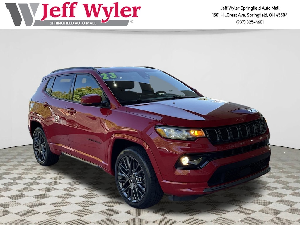 Jeff Wyler Springfield Auto Mall is pleased to offer this terrific 2023 Jeep Compass Limited in Redline Pearlcoat. Well equipped with: ABS brakes, Active Cruise Control, Alloy wheels, Compass, Electronic Stability Control, Front dual zone A/C, Heated door mirrors, Heated front seats, Illuminated entry, Low tire pressure warning, ParkView Rear Back-Up Camera, Passenger door bin, Remote keyless entry, Traction control, 10.1" Touchscreen Display, 3.73 Final Drive Ratio, 4-Wheel Disc Brakes, 6 Speakers, Air Conditioning, AM/FM radio: SiriusXM, Auto High-beam Headlights, Auto-dimming Rear-View mirror, Automatic temperature control, Brake assist, Bumpers: body-color, Delay-off headlights, Disassociated Touchscreen Display, Driver door bin, Driver vanity mirror, Dual front impact airbags, Dual front side impact airbags, Four wheel independent suspension, Front anti-roll bar, Front Bucket Seats, Front Center Armrest w/Storage, Front fog lights, Front reading lights, Fully automatic headlights, Heated steering wheel, Hidden Exhaust Tips-Dual, Knee airbag, Leather Shift Knob, Leatherette Seats, Occupant sensing airbag, Outside temperature display, Overhead airbag, Overhead console, Panic alarm, Passenger vanity mirror, Power door mirrors, Power driver seat, Power steering, Power windows, Radio: Uconnect 5 w/10.1" Display, Rain sensing wipers, Rear anti-roll bar, Rear seat center armrest, Rear window defroster, Rear window wiper, Security system, SiriusXM Radio Service, Speed control, Split folding rear seat, Spoiler, Steering wheel mounted audio controls, Tachometer, Telescoping steering wheel, Tilt steering wheel, Trip computer, Turn signal indicator mirrors, Variably intermittent wipers, and Wheels: 18" x 7" Painted Diamond Cut Aluminum. Ask about available certifications. Used vehicles 10 years of age or newer with less than 100,000 miles are eligible for the Wyler Assurance Program, but eligible vehicles must pass our reconditioning process and multi-point inspection. Provided the vehicle passes inspection, vehicles will be eligible for the 6 month/6,000 mile limited warranty. The 6 month/6,000 mile limited warranty is NOT available on AS-IS vehicles, wholesale vehicles, lease buyback/pass-thru vehicles or un-inspected vehicles. Note that this program can also apply to vehicles where the remaining factory coverage is less than 6 months or 6,000 miles. Please check the Federal Trade Commission (FTC) Buyers guide on the vehicle for full details as to whether or not warranty coverage may apply. Contact Dealer for additional details. The Wyler Assurance 6 month/6,000 Mile limited warranty ends 6 months from the date of the Retail Purchase Agreement (BUYERS ORDER) or when the vehicle's odometer registers 6,000 additional miles to the mileage listed on the BUYERS ORDER, whichever comes first. Your Deductible - The warranty holder on your contract pays the first $100 of each covered repair.
