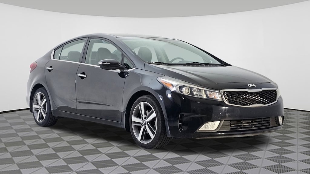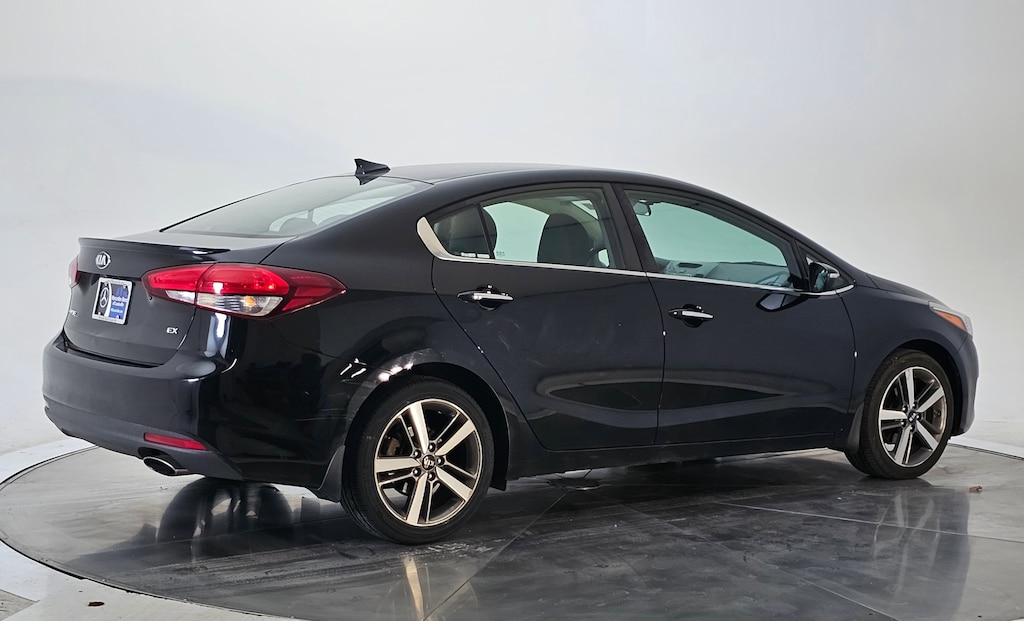 Aurora Black Pearl 2017 Kia Forte EX FWD 6-Speed Automatic 2.0L I4 DOHC Dual CVVT 4-Wheel Disc Brakes, 6 Speakers, Air Conditioning, AM/FM radio: SiriusXM, Bumpers: body-color, Driver door bin, Driver vanity mirror, Dual front impact airbags, Front dual zone A/C, Front wheel independent suspension, Low tire pressure warning, Panic alarm, Passenger vanity mirror, Power door mirrors, Power steering, Power windows, Tachometer, Traction control.