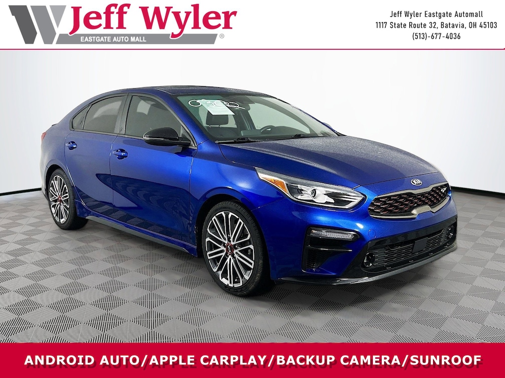 Jeff Wyler Eastgate Auto Mall is pleased to offer this great 2021 Kia Forte GT in Deep Sea Blue. Well equipped with: GT2 Package (10-Way Power Driver's Seat, 4.2" LCD Meter Cluster, Forward Collision-Avoidance Assist- Ped, Heated & Ventilated Front Seats, Lane Change Assist (LCA), Overhead LED Front & Rear Reading Lamps, Parking Distance Warning-Reverse, Power Sunroof, Radio: AM/FM/MP3 harman/kardon Premium Audio System, Rear Cross-Traffic Collision Warning (RCCW), Smart Cruise Control, SOFINO Leathertte Seat Trim, and Wireless Phone Charger), 4-Wheel Disc Brakes, 6 Speakers, ABS brakes, Air Conditioning, Alloy wheels, AM/FM radio: SiriusXM, Apple CarPlay & Android Auto, Auto High-beam Headlights, Brake assist, Bumpers: body-color, Cloth & Leatherette Seat Trim, Delay-off headlights, Driver door bin, Driver vanity mirror, Dual front impact airbags, Dual front side impact airbags, Electronic Stability Control, Emergency communication system: UVO eServices, Exterior Parking Camera Rear, Four wheel independent suspension, Front anti-roll bar, Front Bucket Seats, Front Center Armrest, Front fog lights, Front reading lights, Front Sport Seats, Fully automatic headlights, Heated door mirrors, Illuminated entry, Lane Departure Warning System, Leather Shift Knob, Leather steering wheel, Low tire pressure warning, Occupant sensing airbag, Outside temperature display, Overhead airbag, Overhead console, Panic alarm, Passenger door bin, Passenger vanity mirror, Power door mirrors, Power steering, Power windows, Radio data system, Radio: AM/FM/MP3 Display Audio System, Rear anti-roll bar, Rear seat center armrest, Rear window defroster, Remote keyless entry, Security system, Speed control, Split folding rear seat, Spoiler, Sport steering wheel, Steering wheel mounted audio controls, Tachometer, Telescoping steering wheel, Tilt steering wheel, Traction control, Trip computer, Turn signal indicator mirrors, Variably intermittent wipers, and Wheels: 18" Machine Finish Alloy. CARFAX One-Owner. Clean CARFAX. Awards: * JD Power Initial Quality Study (IQS) Ask about available certifications. Used vehicles 10 years of age or newer with less than 100,000 miles are eligible for the Wyler Assurance Program, but eligible vehicles must pass our reconditioning process and multi-point inspection. Provided the vehicle passes inspection, vehicles will be eligible for the 6 month/6,000 mile limited warranty. The 6 month/6,000 mile limited warranty is NOT available on AS-IS vehicles, wholesale vehicles, lease buyback/pass-thru vehicles or un-inspected vehicles. Note that this program can also apply to vehicles where the remaining factory coverage is less than 6 months or 6,000 miles. Please check the Federal Trade Commission (FTC) Buyers guide on the vehicle for full details as to whether or not warranty coverage may apply. Contact Dealer for additional details. The Wyler Assurance 6 month/6,000 Mile limited warranty ends 6 months from the date of the Retail Purchase Agreement (BUYERS ORDER) or when the vehicle's odometer registers 6,000 additional miles to the mileage listed on the BUYERS ORDER, whichever comes first. Your Deductible - The warranty holder on your contract pays the first $100 of each covered repair.