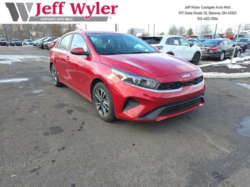 Jeff Wyler Eastgate Auto Mall is very proud to offer this terrific-looking 2024 Kia Forte LXS in Currant Red. Well equipped with: LXS Technology Package (Blind-Spot Collision-Avoidance Assist, Heated Outside Mirrors, Rear Cross-Traffic Collision-Avoidance Assist, and Safe Exit Warning (SEW)), 16" x 6.5J Alloy Wheels, 4 Speakers, 4-Wheel Disc Brakes, ABS brakes, Air Conditioning, Alloy wheels, AM/FM radio, Apple CarPlay & Android Auto, Auto High-beam Headlights, Brake assist, Bumpers: body-color, Cloth Seat Trim, Delay-off headlights, Driver door bin, Driver vanity mirror, Dual front impact airbags, Dual front side impact airbags, Electronic Stability Control, Exterior Parking Camera Rear, Front anti-roll bar, Front Bucket Seats, Front Center Armrest, Front reading lights, Front wheel independent suspension, Fully automatic headlights, Illuminated entry, Low tire pressure warning, Occupant sensing airbag, Outside temperature display, Overhead airbag, Overhead console, Panic alarm, Passenger door bin, Passenger vanity mirror, Power door mirrors, Power steering, Power windows, Radio data system, Radio: 8" Display Audio, Rear window defroster, Remote keyless entry, Security system, Speed control, Split folding rear seat, Steering wheel mounted audio controls, Tachometer, Telescoping steering wheel, Tilt steering wheel, Traction control, Trip computer, and Variably intermittent wipers. CARFAX One-Owner. Clean CARFAX. Ask about available certifications. Used vehicles 10 years of age or newer with less than 100,000 miles are eligible for the Wyler Assurance Program, but eligible vehicles must pass our reconditioning process and multi-point inspection. Provided the vehicle passes inspection, vehicles will be eligible for the 6 month/6,000 mile limited warranty. The 6 month/6,000 mile limited warranty is NOT available on AS-IS vehicles, wholesale vehicles, lease buyback/pass-thru vehicles or un-inspected vehicles. Note that this program can also apply to vehicles where the remaining factory coverage is less than 6 months or 6,000 miles. Please check the Federal Trade Commission (FTC) Buyers guide on the vehicle for full details as to whether or not warranty coverage may apply. Contact Dealer for additional details. The Wyler Assurance 6 month/6,000 Mile limited warranty ends 6 months from the date of the Retail Purchase Agreement (BUYERS ORDER) or when the vehicle's odometer registers 6,000 additional miles to the mileage listed on the BUYERS ORDER, whichever comes first. Your Deductible - The warranty holder on your contract pays the first $100 of each covered repair.