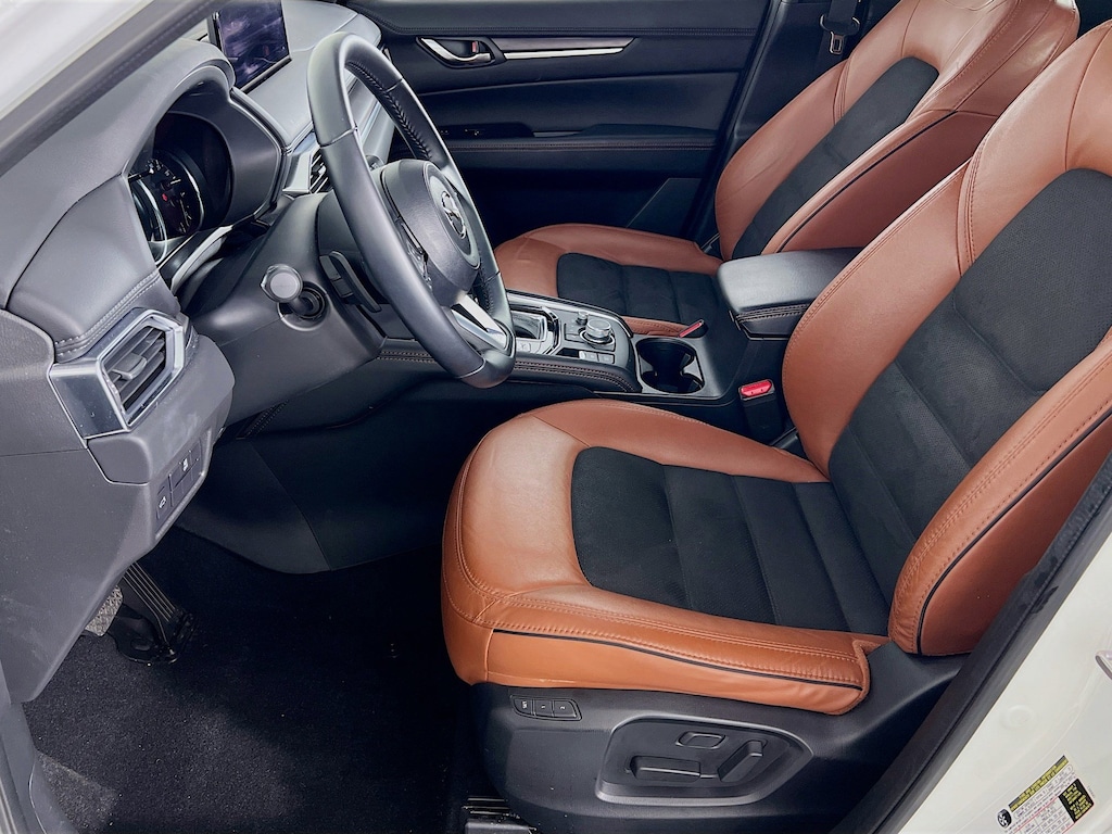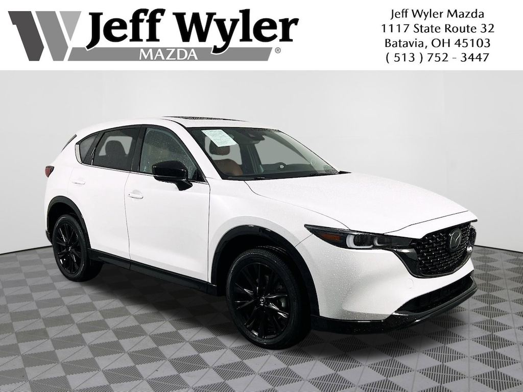 Jeff Wyler Eastgate Auto Mall is excited to offer this handsome 2024 Mazda CX-5 2.5 Carbon Turbo in Rhodium White Metallic. Well equipped with: 10 Speakers, 4-Wheel Disc Brakes, 4.411 Axle Ratio, ABS brakes, Air Conditioning, Alloy wheels, AM/FM radio: SiriusXM, AppLink/Apple CarPlay and Android Auto, Auto High-beam Headlights, Auto-dimming Rear-View mirror, Automatic temperature control, Black Lug Nuts & Black Wheel Locks, Brake assist, Bumpers: body-color, Delay-off headlights, Driver door bin, Driver vanity mirror, Dual front impact airbags, Dual front side impact airbags, E911 Automatic Emergency Notification, Electronic Stability Control, Emergency communication system: MAZDA CONNECT, Exterior Parking Camera Rear, Four wheel independent suspension, Front anti-roll bar, Front Bucket Seats, Front Center Armrest w/Storage, Front dual zone A/C, Front reading lights, Fully automatic headlights, Garage door transmitter: HomeLink, Heads-Up Display, Heated door mirrors, Heated front seats, Heated/Ventilated Front Bucket Seats, Illuminated entry, Infotainment System Voice Command, Leather Shift Knob, Leather steering wheel, Low tire pressure warning, Memory seat, Multifunction Commander Control, Occupant sensing airbag, Outside temperature display, Overhead airbag, Overhead console, Pandora, Panic alarm, Passenger door bin, Passenger vanity mirror, Power door mirrors, Power driver seat, Power Liftgate, Power moonroof, Power passenger seat, Power steering, Power windows, Radio Broadcast Data System Program Information, Radio data system, Radio: AM/FM/HD Audio System, Rain sensing wipers, Rear anti-roll bar, Rear reading lights, Rear seat center armrest, Rear window defroster, Rear window wiper, Remote keyless entry, Rhodium White Metallic Paint, Roof Rack Side Rails, SMS Text Msg Audio Delivery & Reply, Speed control, Speed-sensing steering, Split folding rear seat, Spoiler, Steering wheel mounted audio controls, Tachometer, Telescoping steering wheel, Terracotta Leather Seat Trim, Tilt steering wheel, Traction control, Trip computer, Turn signal indicator mirrors, Variably intermittent wipers, Ventilated front seats, and Wheels: 19" x 7J Aluminum Alloy. CARFAX One-Owner. Clean CARFAX. Ask about available certifications. Used vehicles 10 years of age or newer with less than 100,000 miles are eligible for the Wyler Assurance Program, but eligible vehicles must pass our reconditioning process and multi-point inspection. Provided the vehicle passes inspection, vehicles will be eligible for the 6 month/6,000 mile limited warranty. The 6 month/6,000 mile limited warranty is NOT available on AS-IS vehicles, wholesale vehicles, lease buyback/pass-thru vehicles or un-inspected vehicles. Note that this program can also apply to vehicles where the remaining factory coverage is less than 6 months or 6,000 miles. Please check the Federal Trade Commission (FTC) Buyers guide on the vehicle for full details as to whether or not warranty coverage may apply. Contact Dealer for additional details. The Wyler Assurance 6 month/6,000 Mile limited warranty ends 6 months from the date of the Retail Purchase Agreement (BUYERS ORDER) or when the vehicle's odometer registers 6,000 additional miles to the mileage listed on the BUYERS ORDER, whichever comes first. Your Deductible - The warranty holder on your contract pays the first $100 of each covered repair.