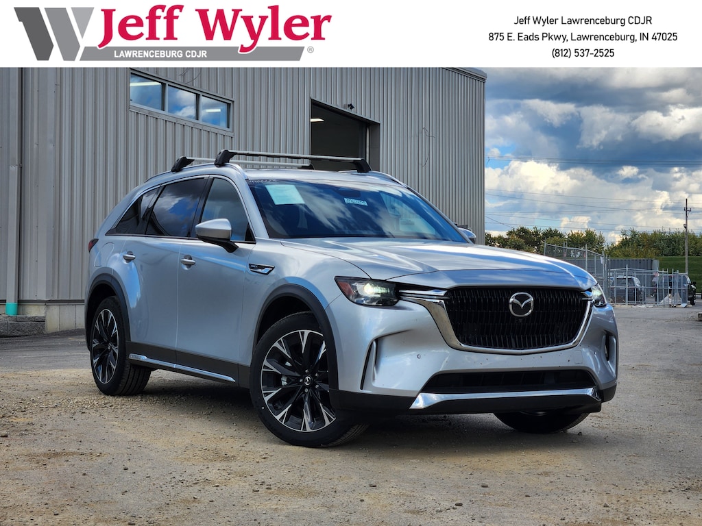 Jeff Wyler Chrysler Dodge Jeep of Lawrenceburg is pleased to offer this terrific 2025 Mazda CX-90 PHEV Premium Plus in Sonic Silver. 12 Speakers, 3rd row seats: bench, 4-Wheel Disc Brakes, ABS brakes, Air Conditioning, Alloy wheels, AM/FM radio: SiriusXM, Auto High-beam Headlights, Auto-dimming door mirrors, Auto-dimming Rear-View mirror, Automatic temperature control, Brake assist, Bumpers: body-color, Cargo Net, Compass, Crossbars in Silver, Delay-off headlights, Digital Rearview Mirror w/HomeLink, Driver door bin, Driver vanity mirror, Dual front impact airbags, Dual front side impact airbags, E911 Automatic Emergency Notification, Electronic Stability Control, Emergency communication system: MAZDA CONNECT, Four wheel independent suspension, Front anti-roll bar, Front Bucket Seats, Front Center Armrest w/Storage, Front dual zone A/C, Front reading lights, Fully automatic headlights, Garage door transmitter: HomeLink, Heads-Up Display, Heated door mirrors, Heated front seats, Heated rear seats, Heated steering wheel, Heated/Ventilated Front Bucket Seats, Illuminated entry, Infotainment System Voice Command, Knee airbag, Leather Shift Knob, Leather steering wheel, Low tire pressure warning, Mazda Connected Services, Mazda Navigation System, Memory seat, Nappa Leather Seat Trim, Navigation system: MAZDA CONNECT, Occupant sensing airbag, Outside temperature display, Overhead airbag, Overhead console, Pandora Internet Radio Integration, Panic alarm, Passenger door bin, Passenger vanity mirror, Power door mirrors, Power driver seat, Power Liftgate, Power moonroof, Power passenger seat, Power steering, Power windows, Radio Broadcast Data System Program Information, Radio data system, Radio: AM/FM w/HD/Bose 12-Speaker Sound System, Rain sensing wipers, Rear air conditioning, Rear anti-roll bar, Rear reading lights, Rear window defroster, Rear window wiper, Remote keyless entry, Security system, SMS Text Msg Audio Delivery & Reply, Speed control, Speed-sensing steering, Split folding rear seat, Spoiler, Steering wheel mounted audio controls, Tachometer, Telescoping steering wheel, Tilt steering wheel, Traction control, Trip computer, Turn signal indicator mirrors, Variably intermittent wipers, Ventilated front seats, and Wheels: 21" x 9.5J Aluminum Alloy Our PRE-OWNED vehicles are put through a rigorous 167- POINT QUALITY ASSURANCE INSPECTION along with an average amount of over $1,400.00 SPENT to recondition each vehicle so we can be sure to deliver you the highest quality vehicle like you deserve! ***ONLINE PRICE DOES NOT INCLUDE WYLER FAMILY FIRST PACKAGE*** Stop by 4136 Shelbyville Road to see for yourself, or give us a call @ 502-897-3151 to schedule your test drive! Ask about available certifications.