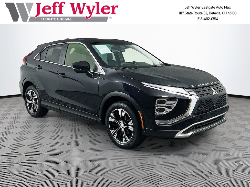 Jeff Wyler Eastgate Auto Mall is very proud to offer this outstanding-looking 2022 Mitsubishi Eclipse Cross SE in Black. Well equipped with: ABS brakes, Alloy wheels, Electronic Stability Control, Emergency communication system, Front dual zone A/C, Heated door mirrors, Heated Front Bucket Seats, Heated front seats, Illuminated entry, Low tire pressure warning, Navigation System, Remote keyless entry, Traction control, 4-Wheel Disc Brakes, 6 Speakers, 6.386 Axle Ratio, Air Conditioning, AM/FM radio: SiriusXM, Android Auto & Apple CarPlay, Auto High-beam Headlights, Auto-dimming Rear-View mirror, Automatic temperature control, Brake assist, Bumpers: body-color, Delay-off headlights, Driver door bin, Driver vanity mirror, Dual front impact airbags, Dual front side impact airbags, Exterior Parking Camera Rear, Four wheel independent suspension, Front anti-roll bar, Front Bucket Seats, Front Center Armrest, Front fog lights, Front reading lights, Fully automatic headlights, Knee airbag, Leather Shift Knob, Occupant sensing airbag, Outside temperature display, Overhead airbag, Overhead console, Panic alarm, Passenger door bin, Passenger vanity mirror, Power door mirrors, Power driver seat, Power steering, Power windows, Radio data system, Radio: AM/FM 8.0" Nav System w/Smartphone-Link, Rain sensing wipers, Rear anti-roll bar, Rear seat center armrest, Rear window defroster, Rear window wiper, Security system, Speed control, Speed-sensing steering, Split folding rear seat, Spoiler, Steering wheel mounted audio controls, Synthetic Suede Seating Surfaces, Tachometer, Telescoping steering wheel, Tilt steering wheel, Trip computer, Turn signal indicator mirrors, Variably intermittent wipers, and Wheels: 18" x 7.0J Two-Tone Alloy. CARFAX One-Owner. Clean CARFAX. Ask about available certifications. Used vehicles 10 years of age or newer with less than 100,000 miles are eligible for the Wyler Assurance Program, but eligible vehicles must pass our reconditioning process and multi-point inspection. Provided the vehicle passes inspection, vehicles will be eligible for the 6 month/6,000 mile limited warranty. The 6 month/6,000 mile limited warranty is NOT available on AS-IS vehicles, wholesale vehicles, lease buyback/pass-thru vehicles or un-inspected vehicles. Note that this program can also apply to vehicles where the remaining factory coverage is less than 6 months or 6,000 miles. Please check the Federal Trade Commission (FTC) Buyers guide on the vehicle for full details as to whether or not warranty coverage may apply. Contact Dealer for additional details. The Wyler Assurance 6 month/6,000 Mile limited warranty ends 6 months from the date of the Retail Purchase Agreement (BUYERS ORDER) or when the vehicle's odometer registers 6,000 additional miles to the mileage listed on the BUYERS ORDER, whichever comes first. Your Deductible - The warranty holder on your contract pays the first $100 of each covered repair.