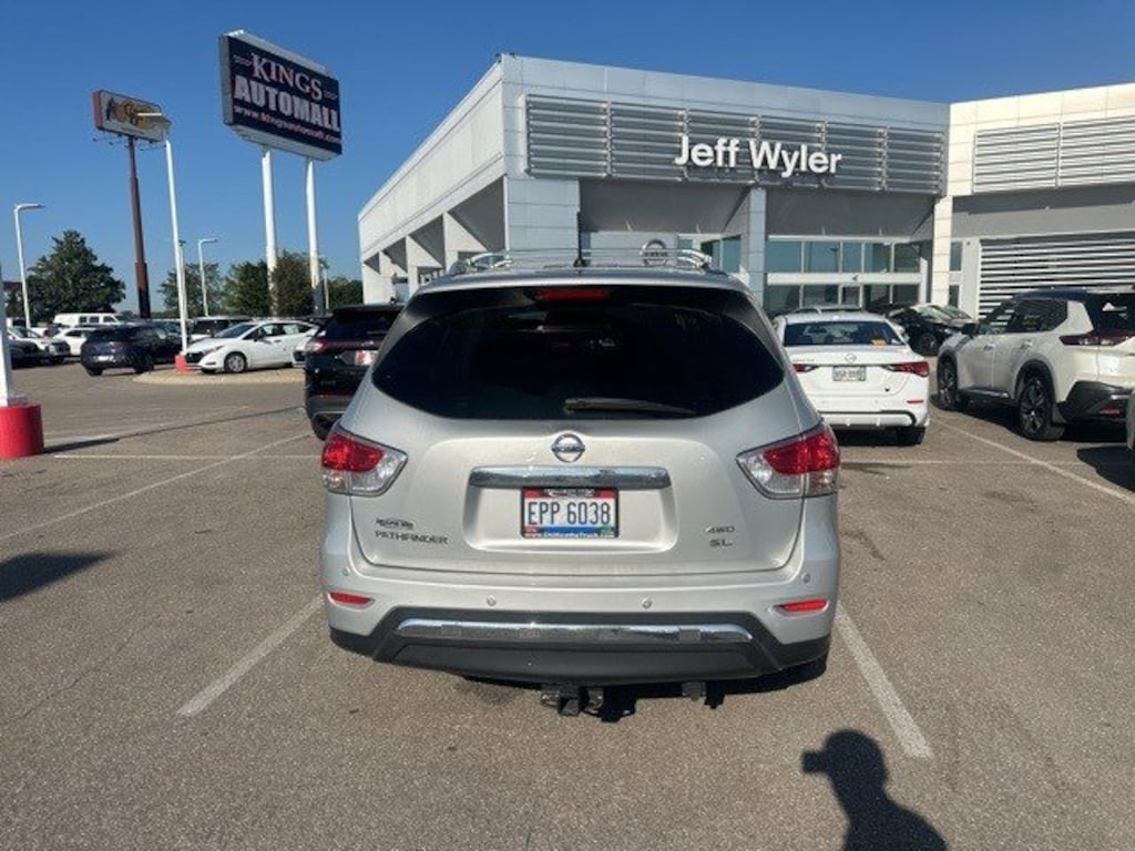 Jeff Wyler Kings Nissan is proud to offer this wonderful-looking 2016 Nissan Pathfinder in . Well equipped with: 4WD, 3rd row seats: bench, 4-Wheel Disc Brakes, 5.25 Axle Ratio, ABS brakes, Air Conditioning, Alloy wheels, Automatic temperature control, Brake assist, Bumpers: body-color, CD player, Driver door bin, Driver vanity mirror, Dual front impact airbags, Dual front side impact airbags, Electronic Stability Control, Four wheel independent suspension, Front anti-roll bar, Front Bucket Seats, Front Center Armrest w/Storage, Front dual zone A/C, Front reading lights, Illuminated entry, Low tire pressure warning, Occupant sensing airbag, Outside temperature display, Overhead airbag, Overhead console, Panic alarm, Passenger door bin, Passenger vanity mirror, Power door mirrors, Power steering, Power windows, Rear air conditioning, Rear anti-roll bar, Rear seat center armrest, Rear window defroster, Rear window wiper, Reclining 3rd row seat, Remote keyless entry, Roof rack: rails only, Security system, Speed control, Speed-sensing steering, Split folding rear seat, Spoiler, Steering wheel mounted audio controls, Tachometer, Telescoping steering wheel, Tilt steering wheel, Traction control, Trip computer, and Variably intermittent wipers.Ask about available certifications.