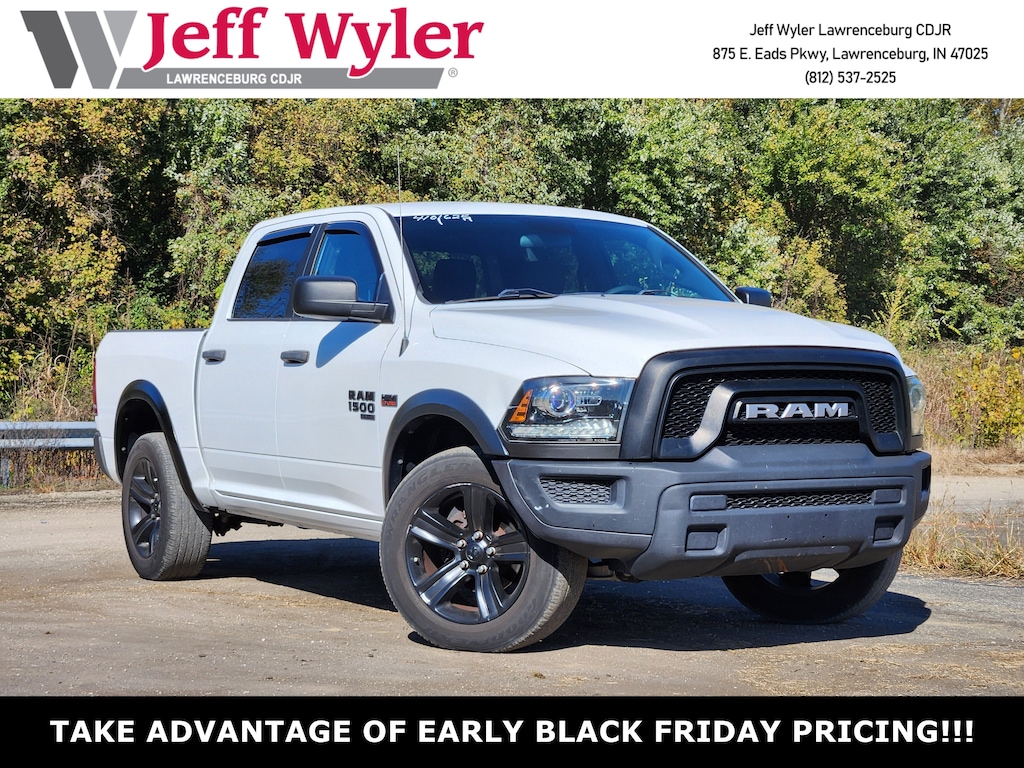 Jeff Wyler Chrysler Dodge Jeep of Lawrenceburg is honored to offer this gorgeous 2021 Ram 1500 Classic Warlock in Bright White Clearcoat. Quick Order Package 26F Warlock (4x4 Flat Black Badge, Bi-Function Halogen Projector Headlamps, Black Door Handles, Black Exterior Truck Badging, Black Grille w/RAM Lettering, Black Headlamp Filler Panel, Black Powder Coated Front Bumper, Black Powder Coated Rear Bumper, Black RAM Head Tailgate Badge, Black Wheel Flares, Dual Rear Exhaust w/Bright Tips, Front Wheel Well Liners, ParkSense Rear Park Assist System, Raised Ride Height, Rear Extra HD Shock Absorbers, Semi-Gloss Black Hub, Sport Tail Lamps, Warlock, Warlock Interior Accents, and Wheels: 20" x 9" Semi-Gloss Black Aluminum), 2nd Row In Floor Storage Bins, 3.21 Rear Axle Ratio, 4-Wheel Disc Brakes, 40/20/40 Split Bench Seat, 6 Speakers, ABS brakes, Active Grille Shutters, Air Conditioning, Alloy wheels, AM/FM radio: SiriusXM, Black Exterior Mirrors, Brake assist, Bumpers: chrome, Center Hub, Cloth 40/20/40 Bench Seat (Fleet), Compass, Delay-off headlights, Driver door bin, Dual front impact airbags, Dual front side impact airbags, Electronic Shift, Electronic Stability Control, Exterior Mirrors w/Heating Element, Front anti-roll bar, Front Armrest w/3 Cupholders, Front Center Armrest w/Storage, Front License Plate Bracket, Front reading lights, Front wheel independent suspension, Fully automatic headlights, GPS Antenna Input, Heated door mirrors, Illuminated entry, Integrated Voice Command w/Bluetooth, Low tire pressure warning, Manufacturer's Statement of Origin, Occupant sensing airbag, Outside temperature display, Overhead airbag, Overhead console, Panic alarm, ParkView Rear Back-Up Camera, Passenger door bin, Passenger vanity mirror, Power door mirrors, Power steering, Power windows, Radio data system, Radio: Uconnect 3 w/5" Display, Rear anti-roll bar, Rear seat center armrest, Rear step bumper, Remote keyless entry, Remote USB Port - Charge Only, Rotary Shifter-Black, Speed control, Storage Tray, Tachometer, Tilt steering wheel, Tip Start, Traction control, Trip computer, Variably intermittent wipers, and Voltmeter Our PRE-OWNED vehicles are put through a rigorous 167- POINT QUALITY ASSURANCE INSPECTION along with an average amount of over $1,400.00 SPENT to recondition each vehicle so we can be sure to deliver you the highest quality vehicle like you deserve! ***ONLINE PRICE DOES NOT INCLUDE WYLER FAMILY FIRST PACKAGE*** Stop by 4136 Shelbyville Road to see for yourself, or give us a call @ 502-897-3151 to schedule your test drive! Ask about available certifications.
