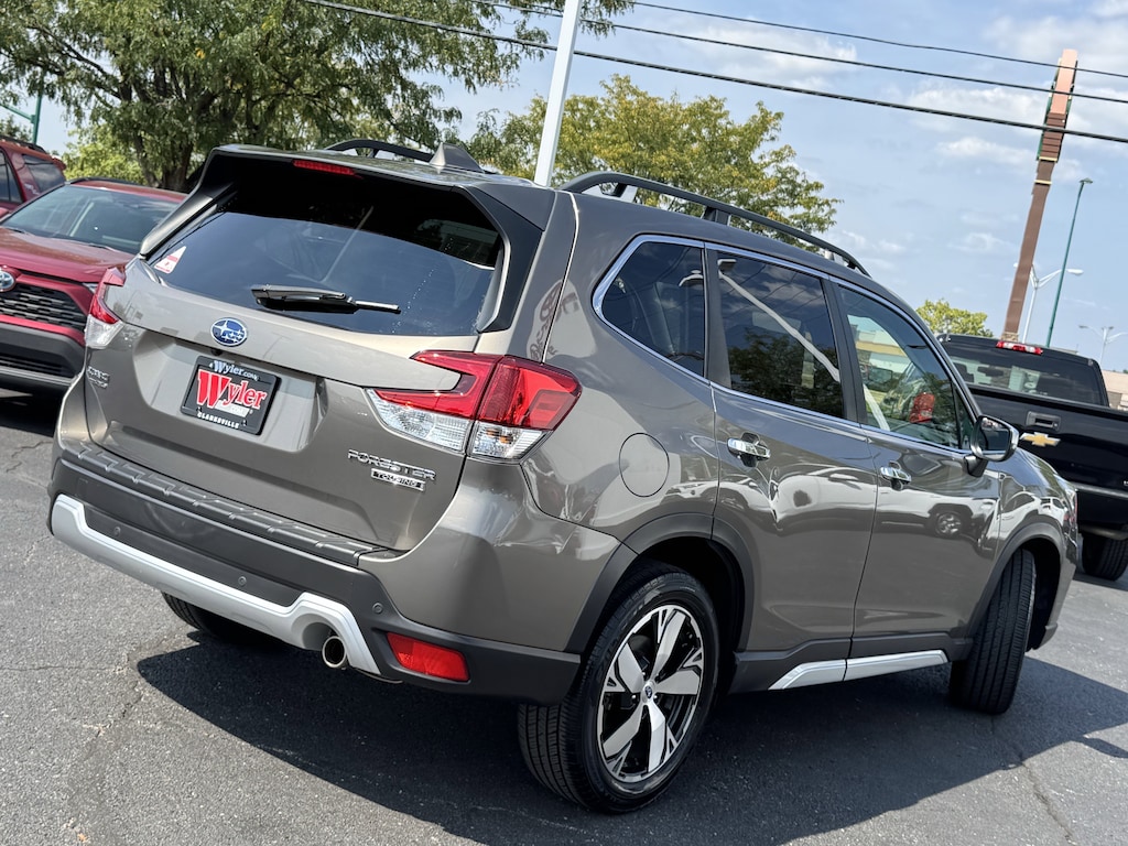 Jeff Wyler Nissan of Louisville is pleased to offer this stunning-looking 2019 Subaru Forester Touring in Sepia Bronze Metallic. ** HOME DELIVERY OPTIONS! ** 3.70 Axle Ratio, 4-Wheel Disc Brakes, 9 Speakers, ABS brakes, Aero Crossbar Set, Air Conditioning, All-Weather Floor Liners, Alloy wheels, AM/FM radio: SiriusXM, Auto High-beam Headlights, Auto-Dimming Mirror w/Compass & HomeLink, Automatic temperature control, Brake assist, Bumpers: body-color, Cargo Net, CD player, Dome Light LED Upgrade, Driver door bin, Driver vanity mirror, Dual front impact airbags, Dual front side impact airbags, Electronic Stability Control, Emergency communication system: STARLINK Safety and Security, Exterior Parking Camera Rear, Four wheel independent suspension, Front anti-roll bar, Front Bucket Seats, Front Center Armrest, Front dual zone A/C, Front fog lights, Front reading lights, Fully automatic headlights, harman kardon 576W Amp & Speaker System, harman/kardon® Speakers, Heated door mirrors, Heated Front Bucket Seats, Heated front seats, Heated rear seats, Heated steering wheel, HVAC memory, Illuminated entry, Knee airbag, Leather Shift Knob, Low tire pressure warning, Memory seat, Navigation System, Occupant sensing airbag, Outside temperature display, Overhead airbag, Overhead console, Paddle-Shift Control Switches, Panic alarm, Passenger door bin, Passenger vanity mirror, Perforated Leather-Trimmed Upholstery, Power door mirrors, Power driver seat, Power Liftgate, Power moonroof: Panoramic, Power passenger seat, Power steering, Power windows, Radio data system, Radio: Subaru Starlink 8.0" Multimedia Nav System, Rear anti-roll bar, Rear Bumper Cover, Rear seat center armrest, Rear window defroster, Rear window wiper, Remote keyless entry, Roof rack: rails only, Security system, Speed control, Speed-sensing steering, Split folding rear seat, Spoiler, STARLINK/Apple CarPlay/Android Auto, Steering wheel mounted audio controls, Sunshade, Tachometer, Telescoping steering wheel, Tilt steering wheel, Traction control, Trip computer, Turn signal indicator mirrors, Variably intermittent wipers, and Wheels: 18" x 7.0J Blk Machine Touring Alum Alloy Our PRE-OWNED vehicles are put through a rigorous 167- POINT QUALITY ASSURANCE INSPECTION along with an average amount of over $1,400.00 SPENT to recondition each vehicle so we can be sure to deliver you the highest quality vehicle like you deserve! ***ONLINE PRICE DOES NOT INCLUDE WYLER FAMILY FIRST PACKAGE*** Stop by 4136 Shelbyville Road to see for yourself, or give us a call @ 502-897-3151 to schedule your test drive!