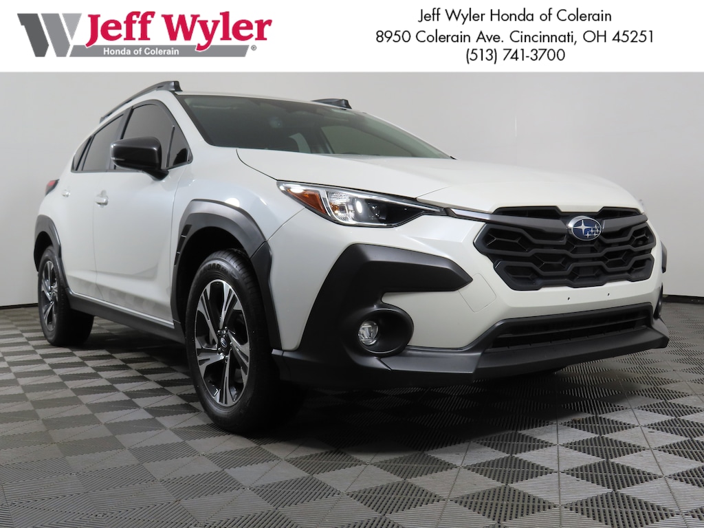 Jeff Wyler Honda of Colerain is honored to offer this wonderful 2025 Subaru Crosstrek Premium in Crystal White Pearl. Well equipped with: All-Weather Package (Dual-Mode Heated Front Seats, Heated Power Exterior Mirrors, and Windshield De-Icer Wipers), BSD/RCTA & All Wthr Pkg & Pwr Dr. Seat & Pwr Moonrf (10-Way Power Driver's Seat, Blind Spot Detection (BSD), Power Moonroof, and Rear Cross-Traffic Alert (RCTA) System), 4-Wheel Disc Brakes, 6 Speakers, ABS brakes, Air Conditioning, All-Weather Floor Liners, Alloy wheels, AM/FM radio: SiriusXM, Anti-whiplash front head restraints, Auto High-beam Headlights, Auto-Dimming Mirror w/Compass & HomeLink, Automatic temperature control, Brake assist, Bumpers: body-color, Cloth Upholstery, Driver door bin, Driver vanity mirror, Dual front impact airbags, Dual front side impact airbags, Electronic Stability Control, Emergency communication system, Exterior Parking Camera Rear, Four wheel independent suspension, Front anti-roll bar, Front Bucket Seats, Front Center Armrest, Front dual zone A/C, Front fog lights, Front reading lights, Fully automatic headlights, Illuminated entry, Knee airbag, LED Upgrade, Low tire pressure warning, Occupant sensing airbag, Outside temperature display, Overhead airbag, Overhead console, Panic alarm, Passenger door bin, Passenger vanity mirror, Power door mirrors, Power steering, Power windows, Radio data system, Radio: Subaru 11.6" Multimedia Plus System, Rear anti-roll bar, Rear seat center armrest, Rear window defroster, Rear window wiper, Remote keyless entry, Security system, Speed control, Speed-sensing steering, Split folding rear seat, Spoiler, Steering wheel mounted audio controls, Tachometer, Telescoping steering wheel, Tilt steering wheel, Traction control, Trip computer, Turn signal indicator mirrors, Variably intermittent wipers, and Wheels: 17" x 7.0" J Machine Finish Aluminum-Alloy.
