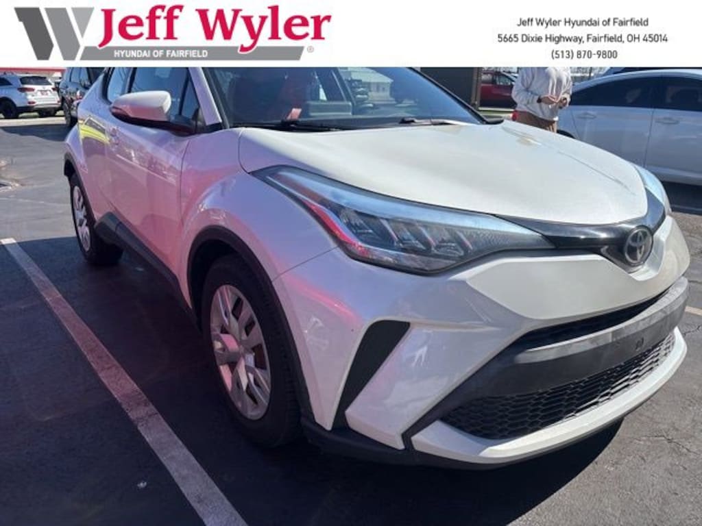 Jeff Wyler Hyundai of Fairfield is excited to offer this stunning-looking 2020 Toyota C-HR LE in White. Well equipped with: Android Auto, Apple CarPlay, CALL NOW FOR YOUR VIP APPOINTMENT 513-870-9800, FULLY SERVICED w/RECORDS, GUARANTEED FINANCING!! NO MATTER YOUR SITUATION WE CAN GET AN APPROVAL!!, THE #1 Volume dealer in the region! Come see why for yourself Today!!, WE PAY MORE FOR YOUR TRADE!!, 4-Wheel Disc Brakes, 6 Speakers, ABS brakes, Air Conditioning, AM/FM radio: SiriusXM, Apple CarPlay/Android Auto, Auto High-beam Headlights, Auto-dimming Rear-View mirror, Automatic temperature control, Axle Ratio: TBD, Brake assist, Bumpers: body-color, Delay-off headlights, Driver door bin, Driver vanity mirror, Dual front impact airbags, Dual front side impact airbags, Electronic Stability Control, Emergency communication system: Safety Connect with 1-year trial, Exterior Parking Camera Rear, Fabric Seat Material, Four wheel independent suspension, Front anti-roll bar, Front Bucket Seats, Front Center Armrest, Front dual zone A/C, Front reading lights, Fully automatic headlights, Heated door mirrors, Illuminated entry, Knee airbag, Leather Shift Knob, Low tire pressure warning, Occupant sensing airbag, Outside temperature display, Overhead airbag, Panic alarm, Passenger door bin, Passenger vanity mirror, Power door mirrors, Power steering, Power windows, Radio data system, Radio: AM/FM Stereo w/8" Touch-Screen Display, Rear anti-roll bar, Rear side impact airbag, Rear window defroster, Rear window wiper, Remote keyless entry, Speed control, Speed-sensing steering, Split folding rear seat, Spoiler, Steering wheel mounted audio controls, Tachometer, Telescoping steering wheel, Tilt steering wheel, Traction control, Trip computer, Turn signal indicator mirrors, Variably intermittent wipers, and Wheels: 6.5" x 17" Steel. TO CHECK ON THE AVAILABILITY OF THIS VEHICLE REACH OUT TO ONE OF OUR TEAM MEMBERS!! ALSO SHOP ONLINE AT https://www.jeffwylerhyundaioffairfield.com/ Proudly Serving: Cincinnati, Dayton, Columbus, Louisville, Lexington, Indianapolis, Hamilton, Florence, Alexandria, Beavercreek, Springdale, West Chester, Monroe, Fairfield, Kenwood, Newport and all of greater Cincinnati Ohio, Indiana, and Northern Kentucky.