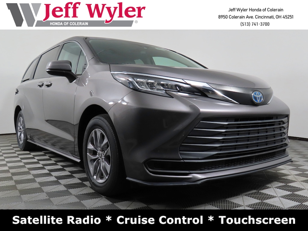 Jeff Wyler Honda of Colerain is very proud to offer this outstanding-looking 2021 Toyota Sienna LE in Gray. Well equipped with: 17" Alloy Wheels, 3rd row seats: split-bench, 4-Wheel Disc Brakes, 6 Speakers, ABS brakes, Air Conditioning, Alloy wheels, AM/FM radio: SiriusXM, Apple CarPlay/Android Auto, Auto High-beam Headlights, Auto-dimming door mirrors, Automatic temperature control, Axle Ratio: TBA, Brake assist, Bumpers: body-color, Compass, Delay-off headlights, Door auto-latch, Driver door bin, Driver vanity mirror, Driver's Seat Mounted Armrest, Dual front impact airbags, Dual front side impact airbags, Electronic Stability Control, Emergency communication system: Safety Connect with 1-year trial, Exterior Parking Camera Rear, Fabric Seat Material, Four wheel independent suspension, Front anti-roll bar, Front Bucket Seats, Front dual zone A/C, Front reading lights, Fully automatic headlights, Heated door mirrors, Illuminated entry, Knee airbag, Lane Departure Warning System, Low tire pressure warning, Occupant sensing airbag, Outside temperature display, Overhead airbag, Overhead console, Panic alarm, Passenger door bin, Passenger seat mounted armrest, Passenger vanity mirror, Power door mirrors, Power driver seat, Power steering, Power windows, Radio data system, Radio: Audio, Rear air conditioning, Rear anti-roll bar, Rear reading lights, Rear seat center armrest, Rear side impact airbag, Rear window defroster, Rear window wiper, Reclining 3rd row seat, Remote keyless entry, Speed control, Speed-sensing steering, Split folding rear seat, Spoiler, Steering wheel mounted audio controls, Tachometer, Telescoping steering wheel, Tilt steering wheel, Traction control, Trip computer, Turn signal indicator mirrors, and Variably intermittent wipers.