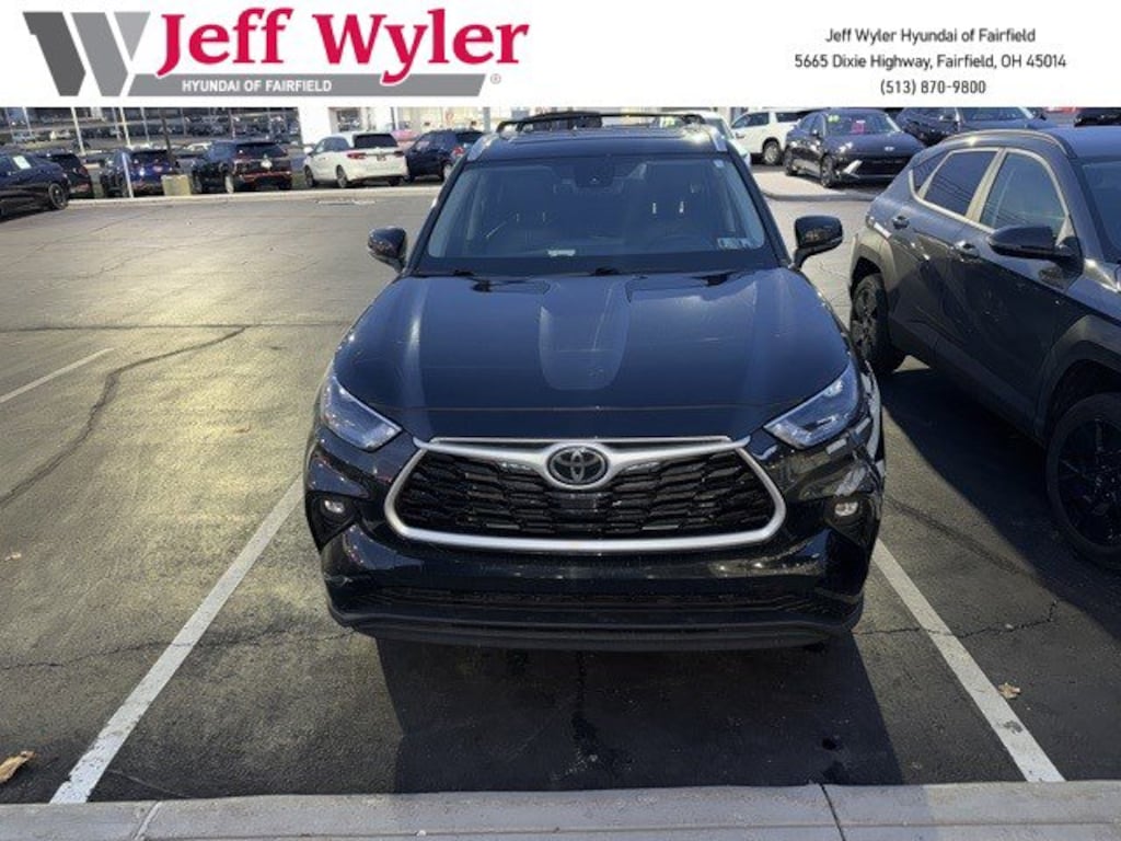 Clean CARFAX. Jeff Wyler Hyundai of Fairfield is delighted to offer this good-looking 2022 Toyota Highlander XLE in . Well equipped with: AWD, Android Auto, Apple CarPlay, CALL NOW FOR YOUR VIP APPOINTMENT 513-870-9800, FULLY SERVICED w/RECORDS, GUARANTEED FINANCING!! NO MATTER YOUR SITUATION WE CAN GET AN APPROVAL!!, THE #1 Volume dealer in the region! Come see why for yourself Today!!, WE PAY MORE FOR YOUR TRADE!!, 3.003 Axle Ratio, 3rd row seats: split-bench, 4-Wheel Disc Brakes, 6 Speakers, ABS brakes, Air Conditioning, Alloy wheels, AM/FM radio: SiriusXM, Apple CarPlay/Android Auto, Auto High-beam Headlights, Auto-dimming Rear-View mirror, Automatic temperature control, Brake assist, Bumpers: body-color, Delay-off headlights, Driver door bin, Driver vanity mirror, Dual front impact airbags, Dual front side impact airbags, Electronic Stability Control, Emergency communication system: Safety Connect with 1-year trial, Exterior Parking Camera Rear, Four wheel independent suspension, Front anti-roll bar, Front Bucket Seats, Front Center Armrest, Front dual zone A/C, Front fog lights, Front reading lights, Fully automatic headlights, Garage door transmitter: HomeLink, Heated door mirrors, Heated Front Bucket Seats, Heated front seats, Illuminated entry, Knee airbag, Leather Shift Knob, Low tire pressure warning, Occupant sensing airbag, Outside temperature display, Overhead airbag, Overhead console, Panic alarm, Passenger door bin, Passenger vanity mirror, Power door mirrors, Power driver seat, Power Liftgate, Power moonroof, Power passenger seat, Power steering, Power windows, Radio: Audio Plus, Rear air conditioning, Rear anti-roll bar, Rear reading lights, Rear window defroster, Rear window wiper, Reclining 3rd row seat, Remote keyless entry, Roof rack: rails only, Security system, SofTex Seat Trim, Speed control, Speed-sensing steering, Split folding rear seat, Spoiler, Steering wheel mounted audio controls, Tachometer, Telescoping steering wheel, Tilt steering wheel, Traction control, Trip computer, Turn signal indicator mirrors, Variably intermittent wipers, and Wheels: 18" Machined-Finish Alloy. TO CHECK ON THE AVAILABILITY OF THIS VEHICLE REACH OUT TO ONE OF OUR TEAM MEMBERS!! ALSO SHOP ONLINE AT https://www.jeffwylerhyundaioffairfield.com/ Proudly Serving: Cincinnati, Dayton, Columbus, Louisville, Lexington, Indianapolis, Hamilton, Florence, Alexandria, Beavercreek, Springdale, West Chester, Monroe, Fairfield, Kenwood, Newport and all of greater Cincinnati Ohio, Indiana, and Northern Kentucky.